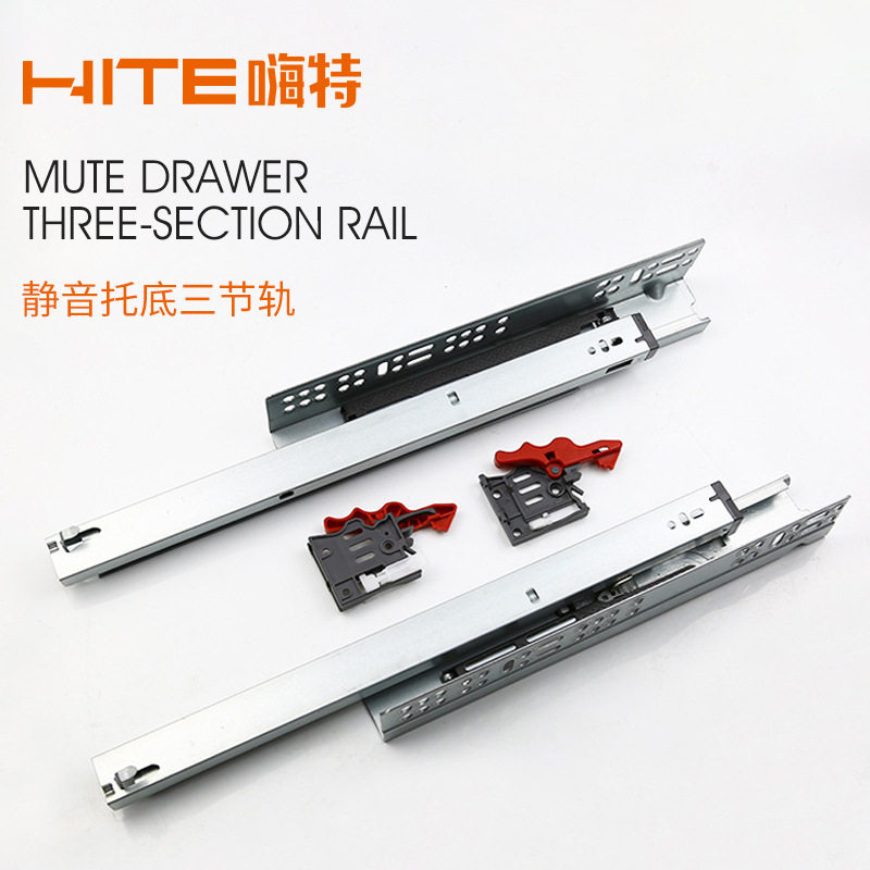 抽屉托底轨三节轨滑轨阻尼缓冲隐藏式轨道 反弹导轨滑道家具五金