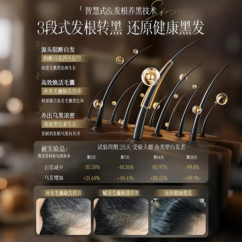 何首乌黑发洗发水白发根控油转黑去屑止痒男女一洗官方旗舰店蓬松