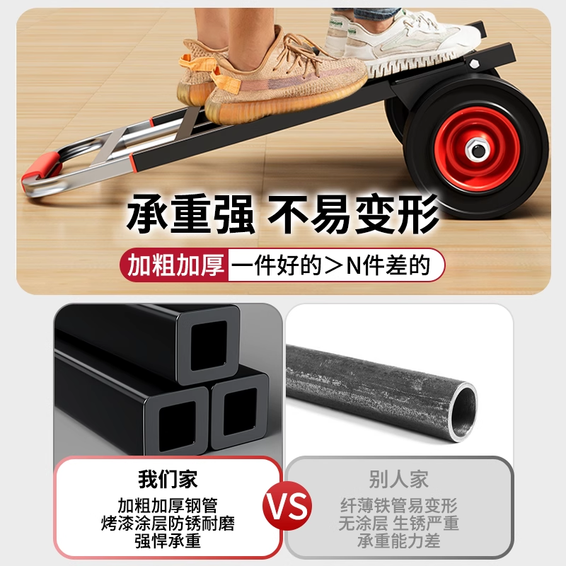 钢板小推车可折叠轻便搬运拉货平板手推车家用取快递便携手拉拖车