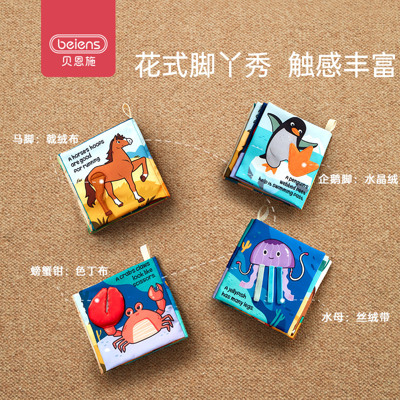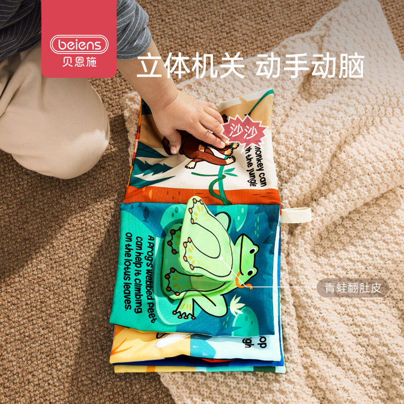 贝恩施宝宝布书婴儿撕不烂可啃咬6个月宝宝早教启蒙益智撕撕书