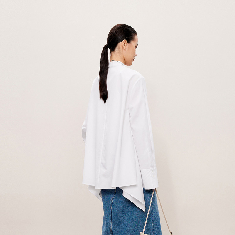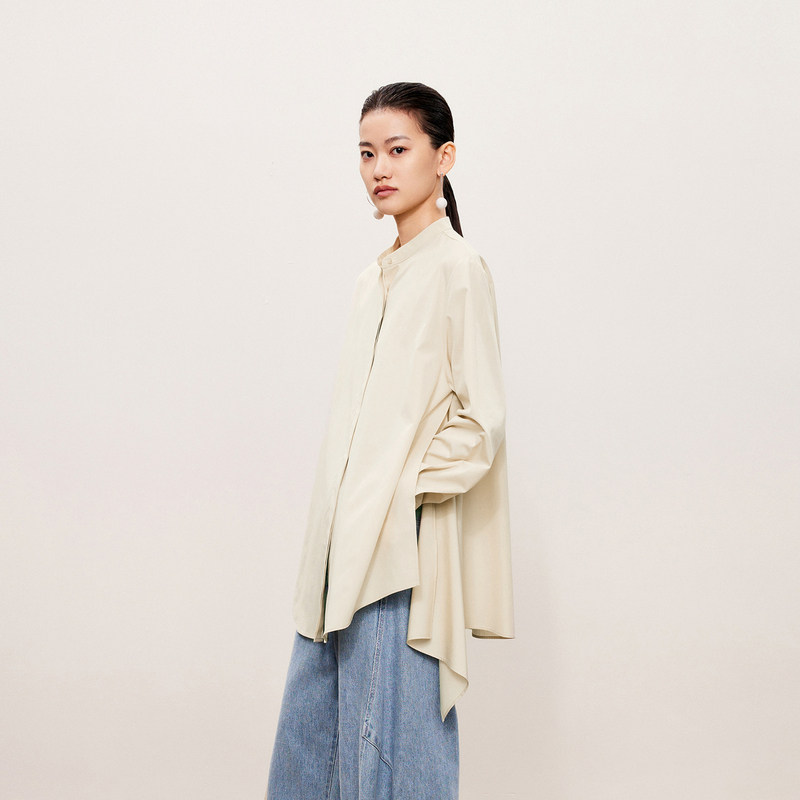 LESS设计感立领长袖衬衫女宽松通勤纯色简约全棉上衣女2O7210710