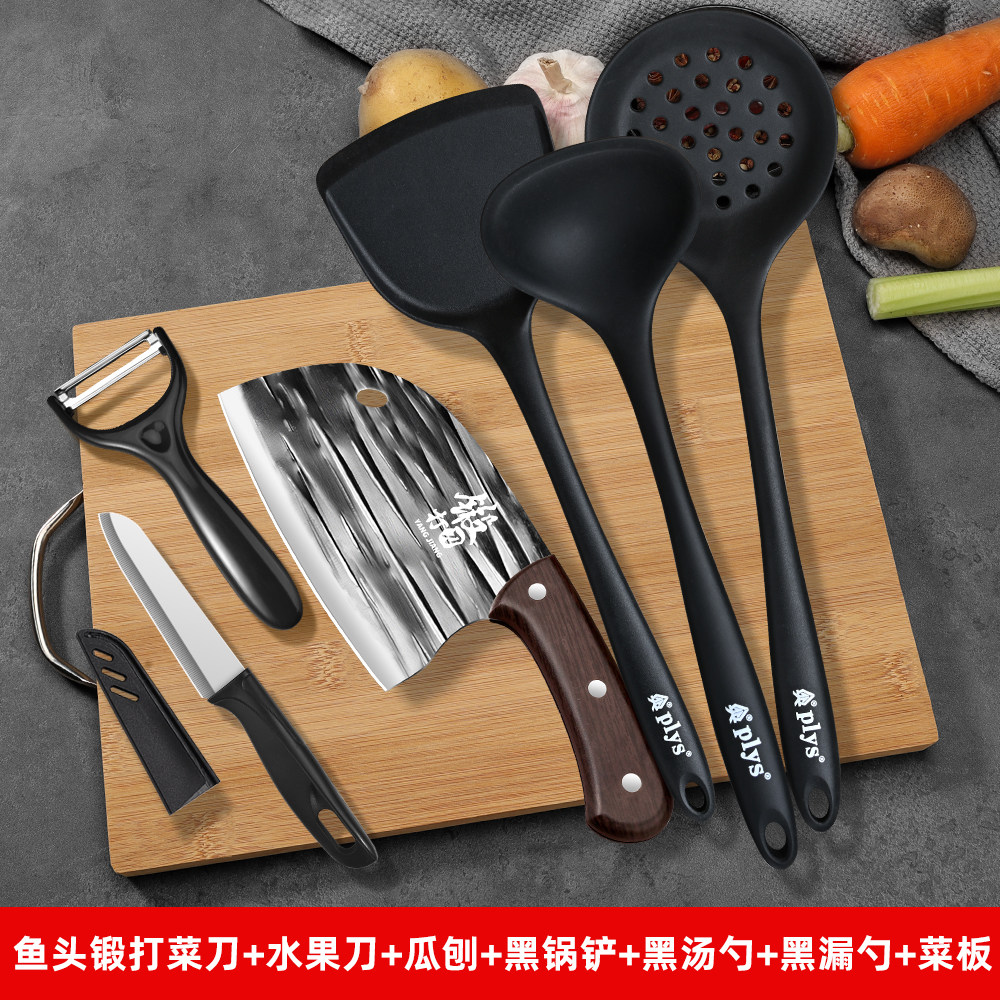 龙泉菜刀菜板刀具厨房套装组合二合一家用锻打切菜刀全套厨具砧板