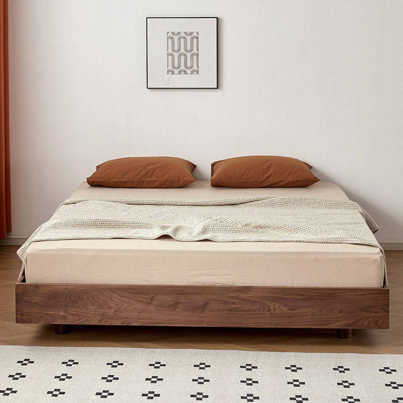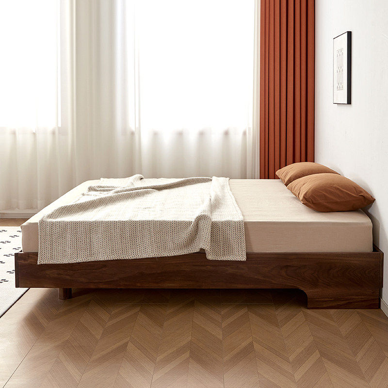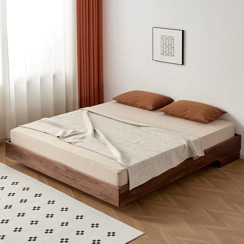 北欧无床头床黑胡桃木悬浮床日式樱桃木全实木1.8双人榻榻米床架