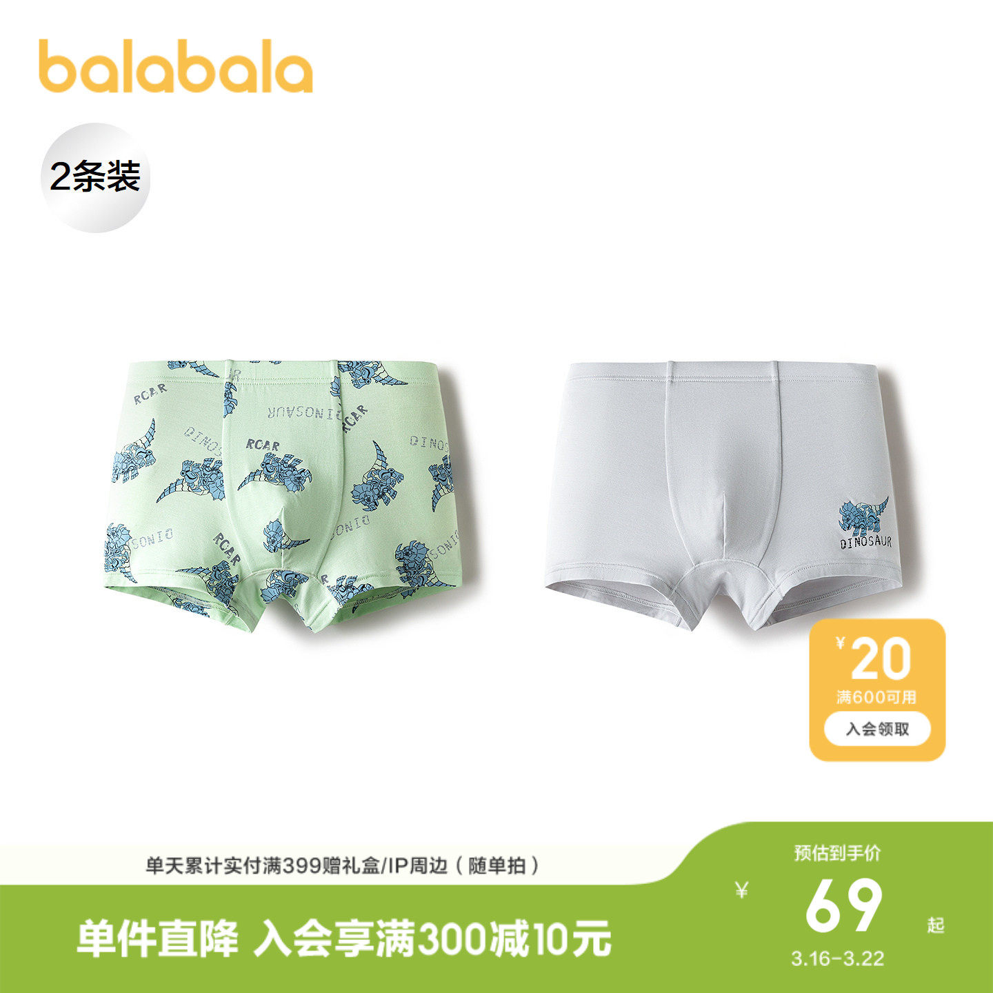 【balaOne】巴拉巴拉儿童内裤棉男童不夹pp抗菌裆四角短裤三条装