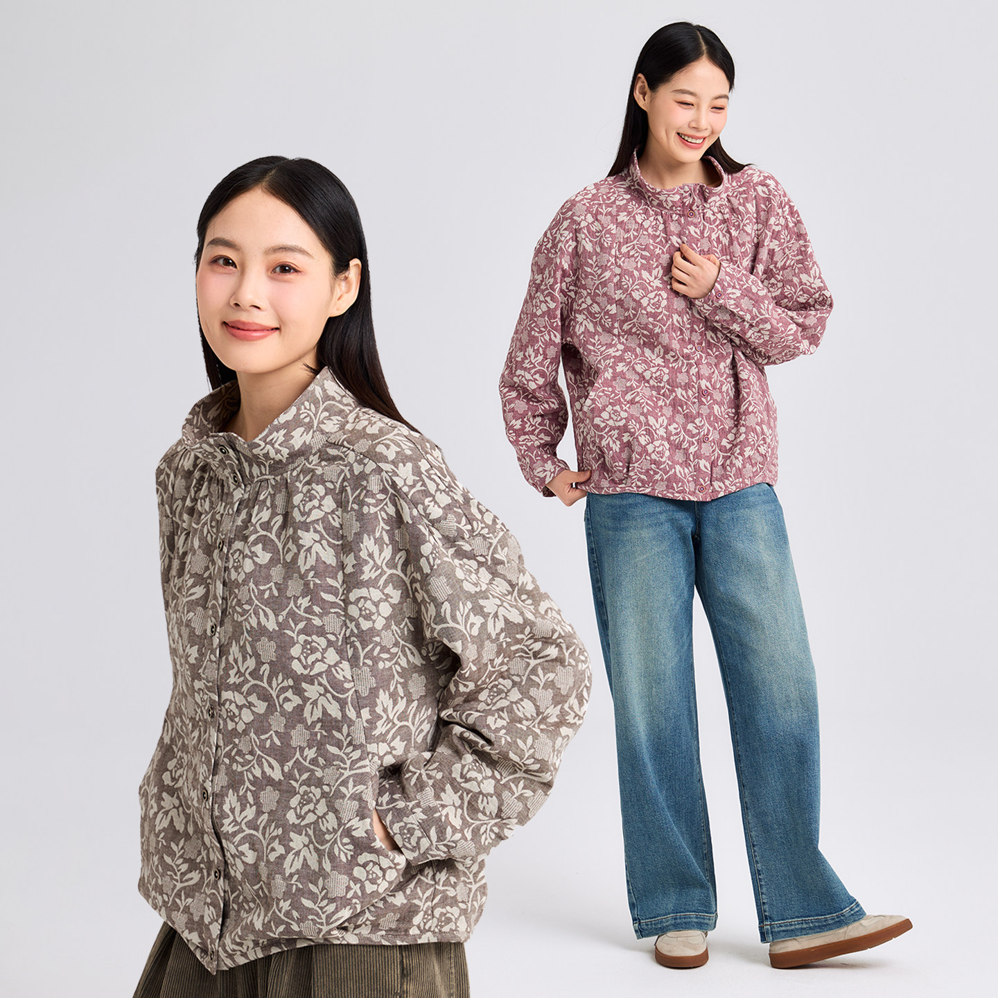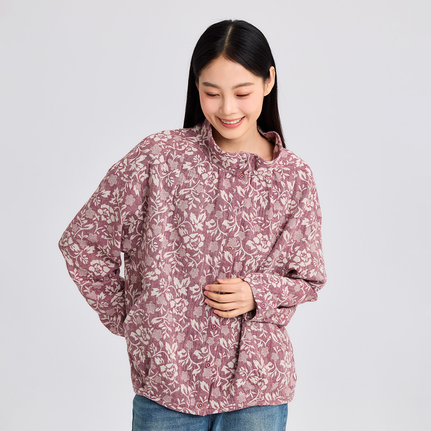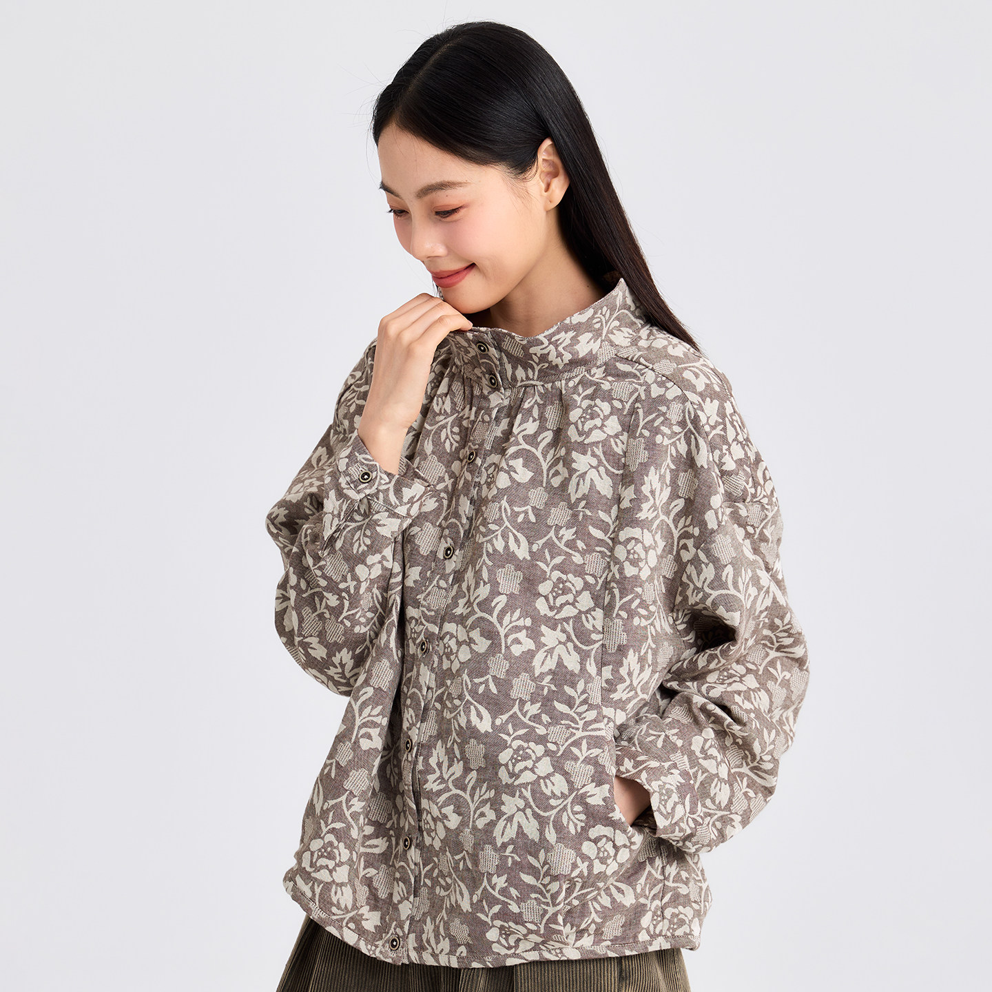 无色无味早春外套女士2026新款肌理提花落肩袖立领短款春装上衣女