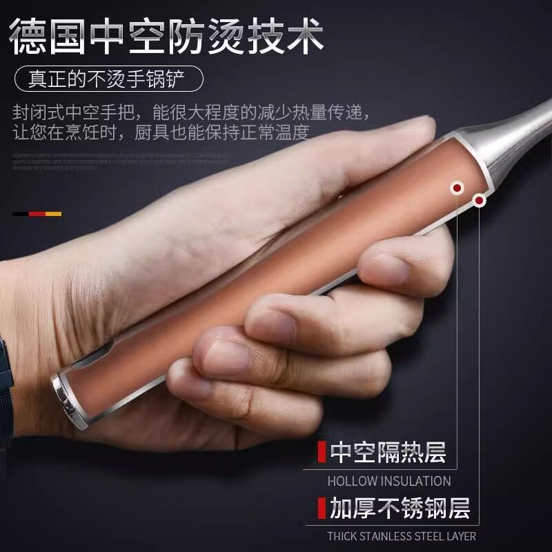 德国加厚加深不锈钢炒菜铁铲子锅铲煎铲汤勺家用厨具套装全套厨房
