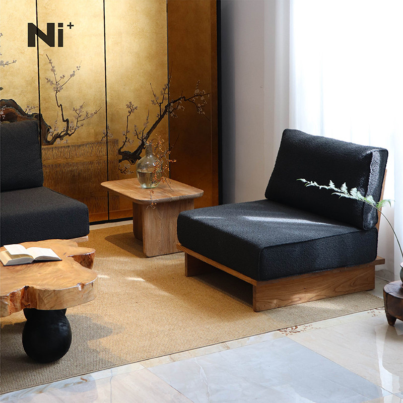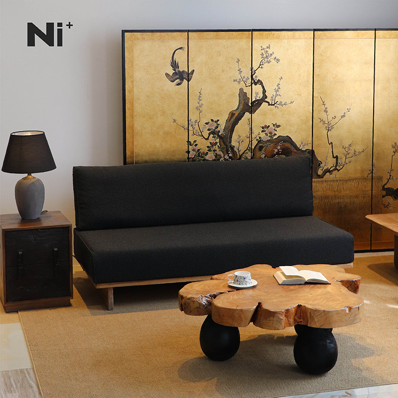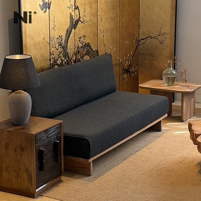 Ni尼家中古风布艺沙发日式客厅直排三人位民宿复古侘寂风地台沙发