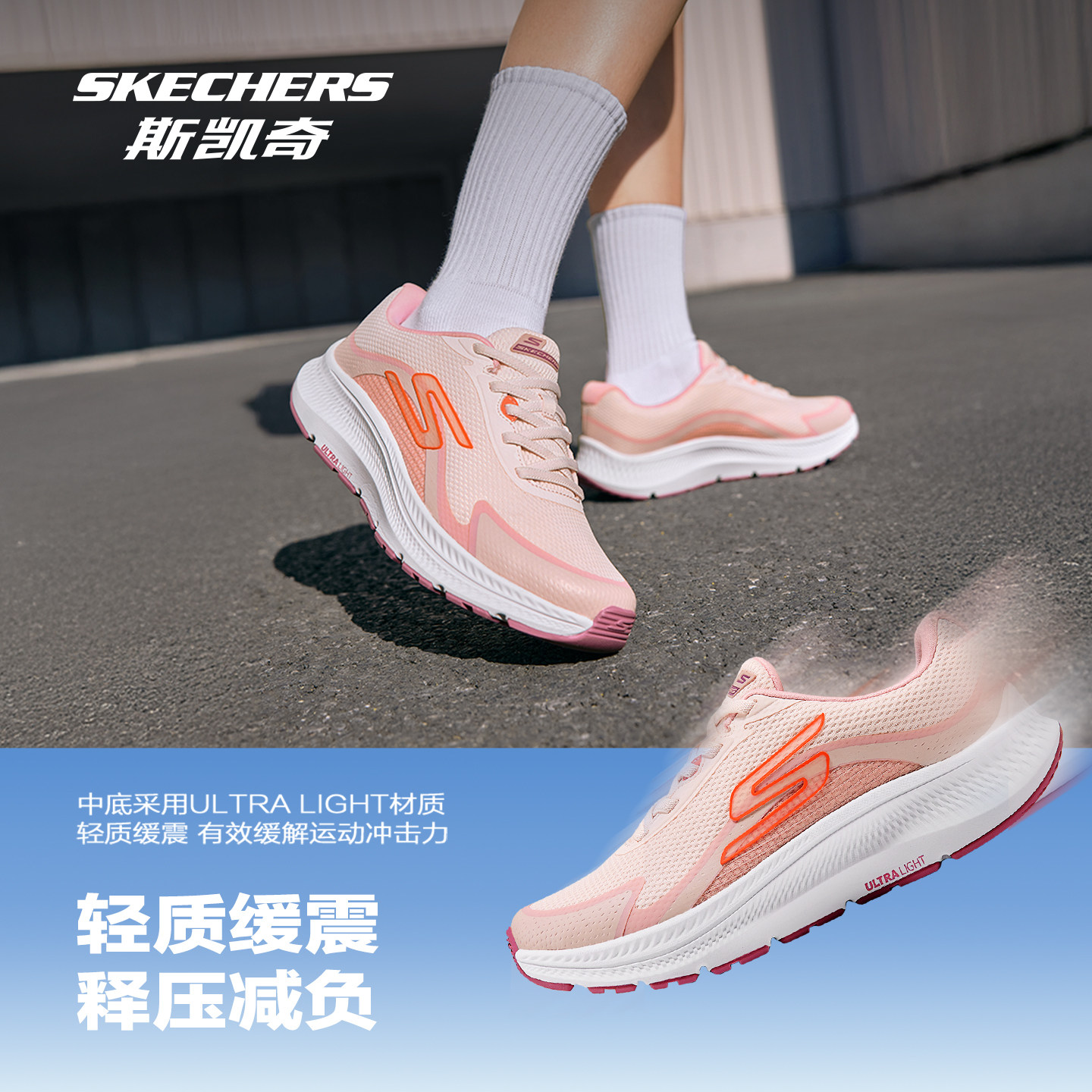 斯凯奇跑步鞋男女款官方低帮运动鞋轻便透气厚底鞋舒适缓震潮流