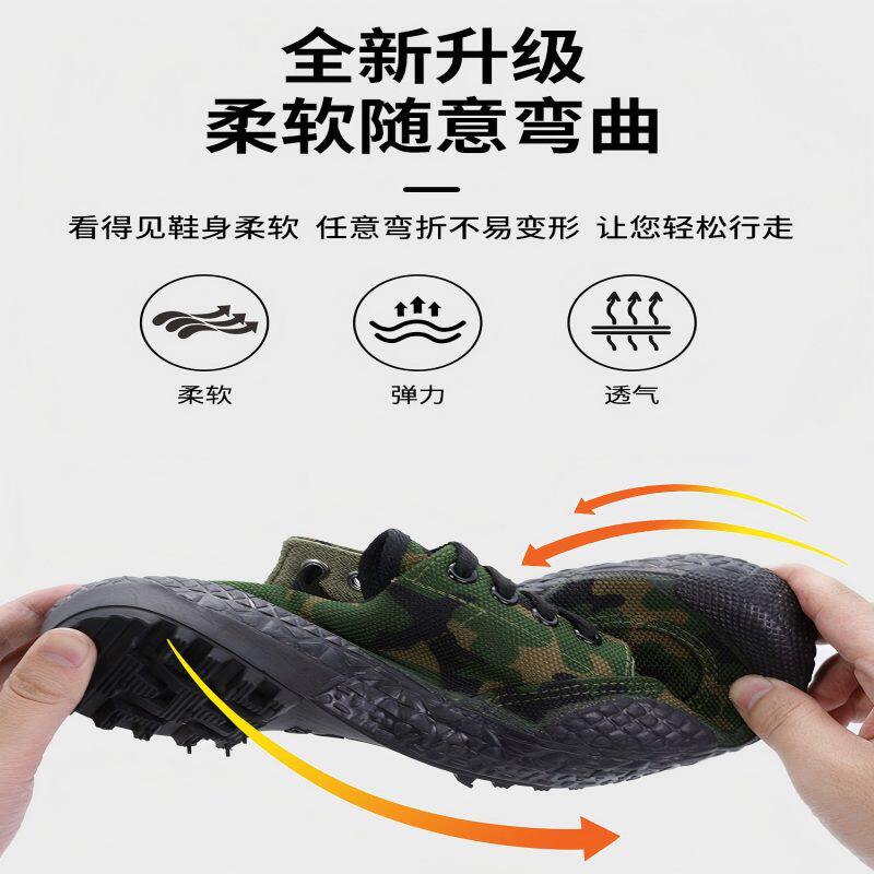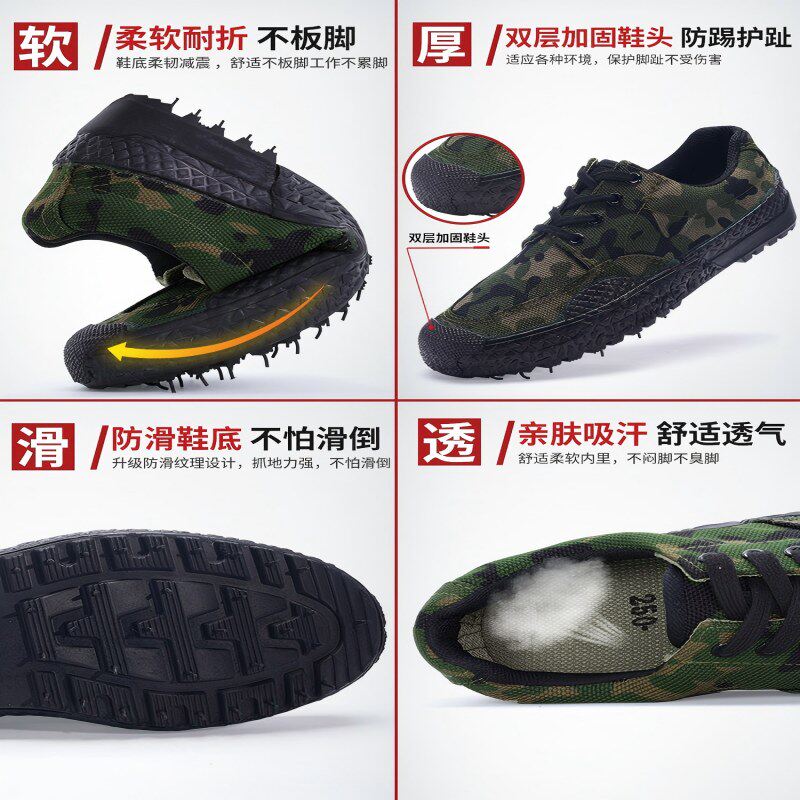 3520解放鞋男春季耐磨防滑劳保鞋女工地黄胶鞋迷彩鞋高帮帆布鞋子