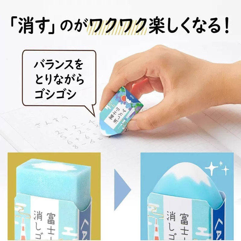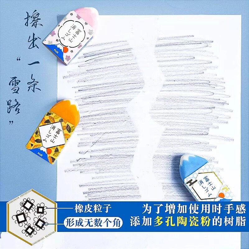 日本PLUS普乐士富士山橡皮30周年限定无屑少屑美术橡皮擦学生专用高颜值日系ins初高中小学生纠正日常学习