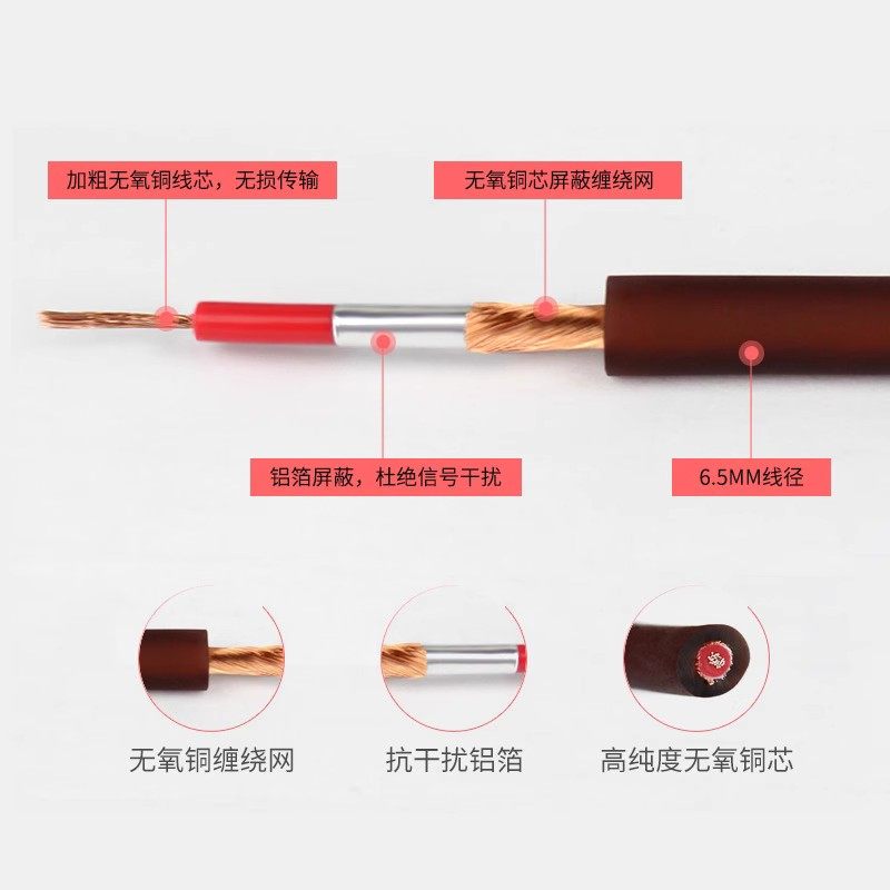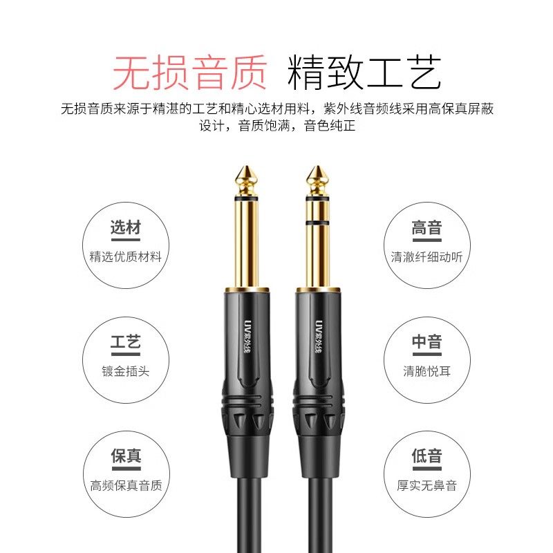 6.5一分二音频线 大三芯双声道转双6.35大二芯单声音频钢琴音箱线