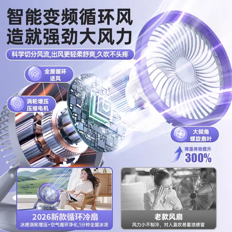 循环制冷】桌面小风扇电风扇家用静音小型办公室2026新款usb充电续航学生宿舍夹式制冷卧室降温神器超长续航