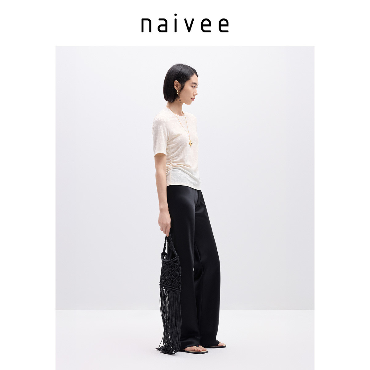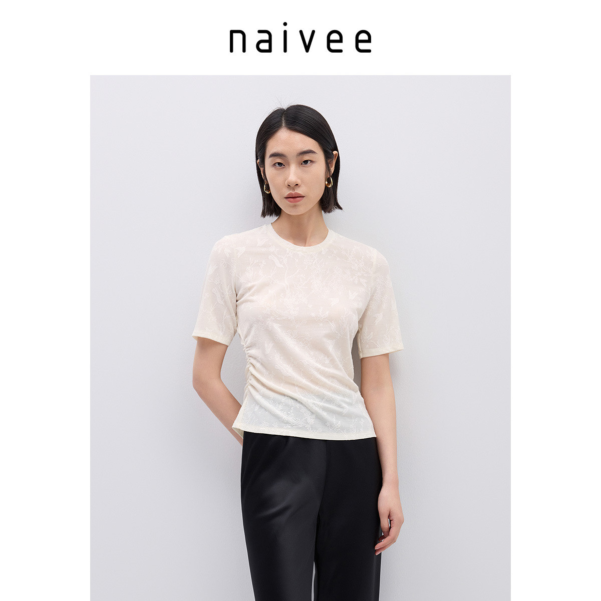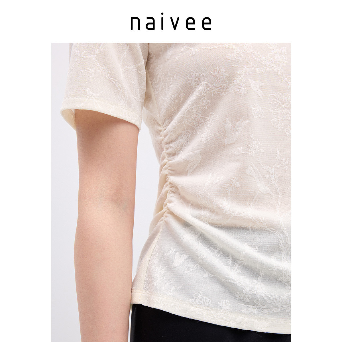 【立体提花工艺】naivee纳薇天丝T袖女夏新款轻薄收腰短袖