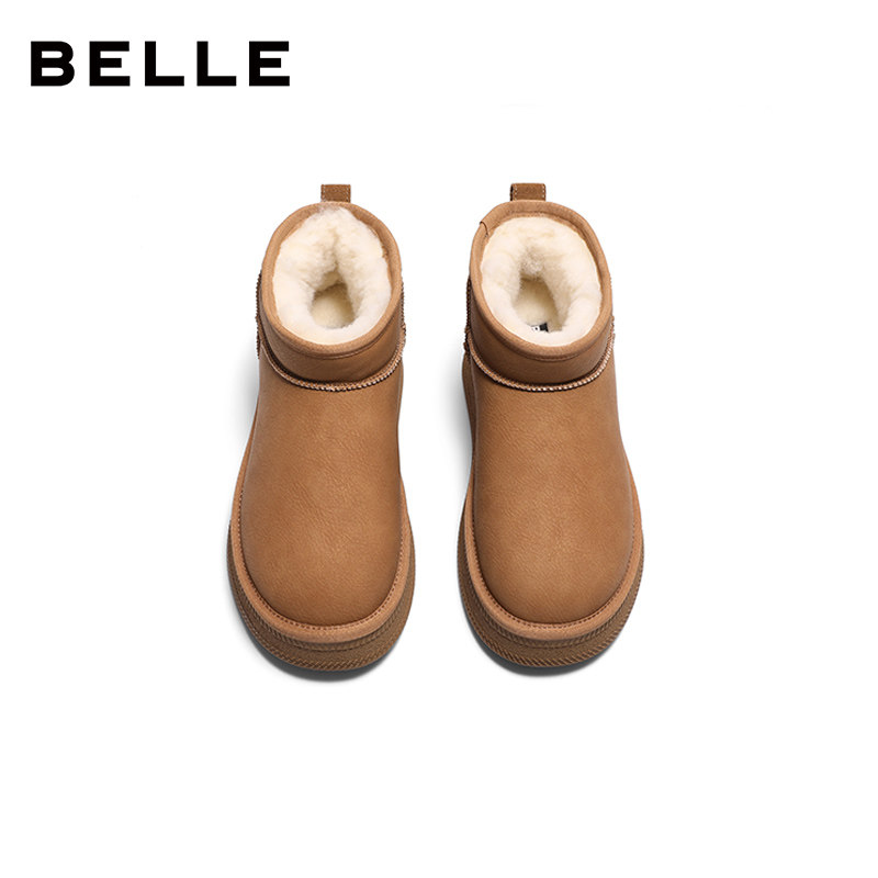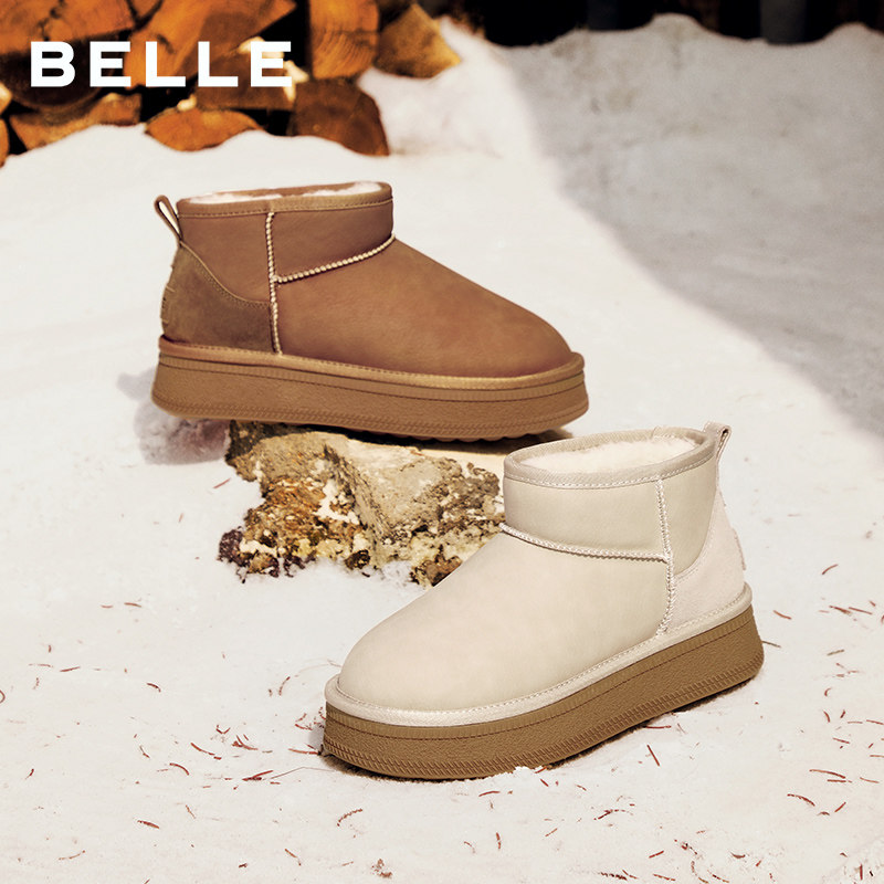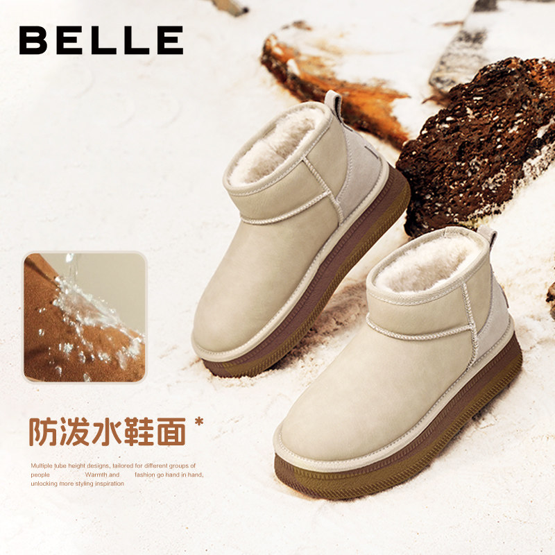 百丽厚底保暖加绒雪地靴女款冬季新款棉鞋羊毛毛短靴子D1K4DDM4
