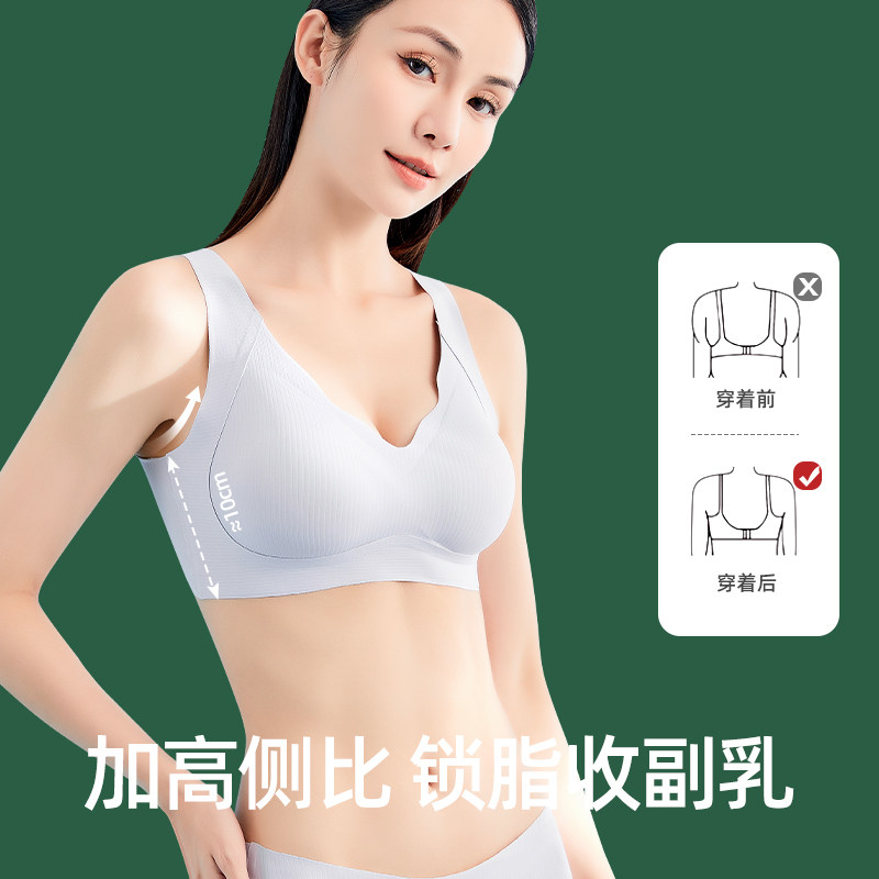 润微提拉女王内衣女大胸显小无痕大码调整防下垂收副乳粉底液文胸