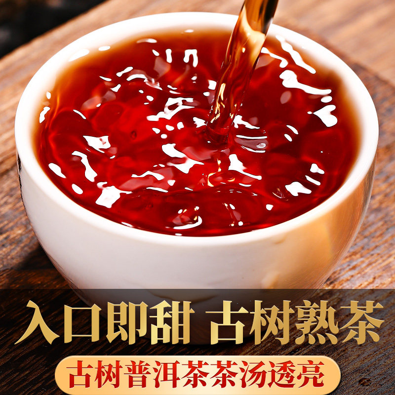 勐海韵古树茶普洱茶熟茶陈年普洱饼茶叶357g云南七子饼黑茶口粮茶