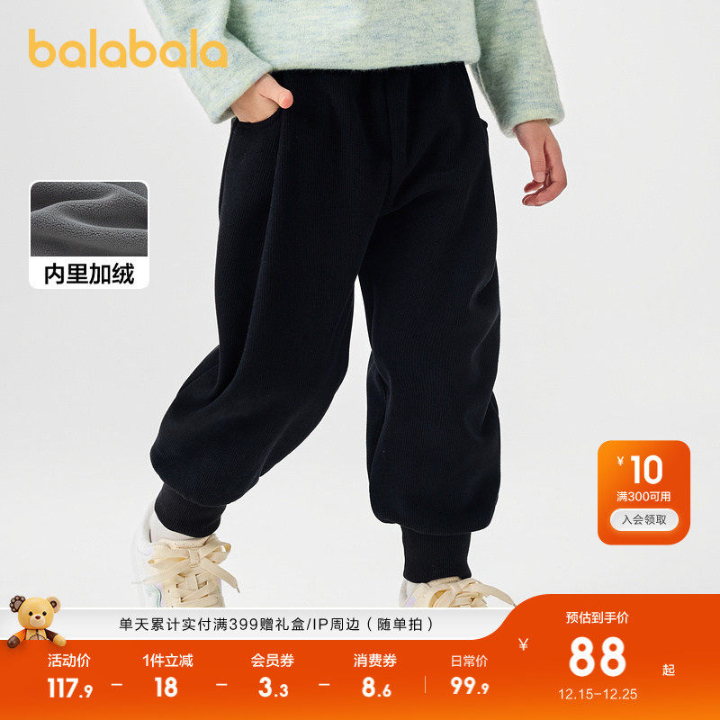巴拉巴拉童装儿童长裤女童裤子冬季加绒针织束脚裤厚款保暖休闲裤