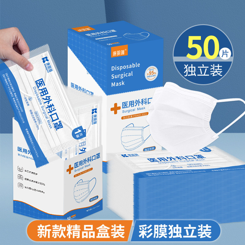 医用外科口罩一次性医疗三层官方正品旗舰店女高颜值透气单独包装