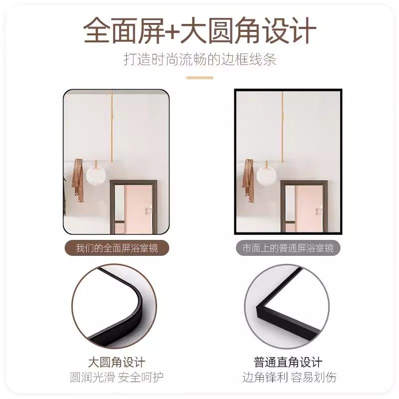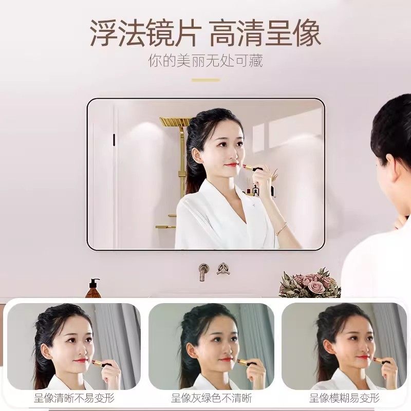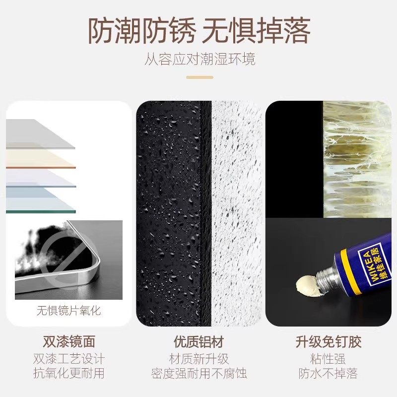 浴室镜子贴墙自粘卫生间洗面梳妆台挂墙式免打孔厕所洗手间卫浴镜