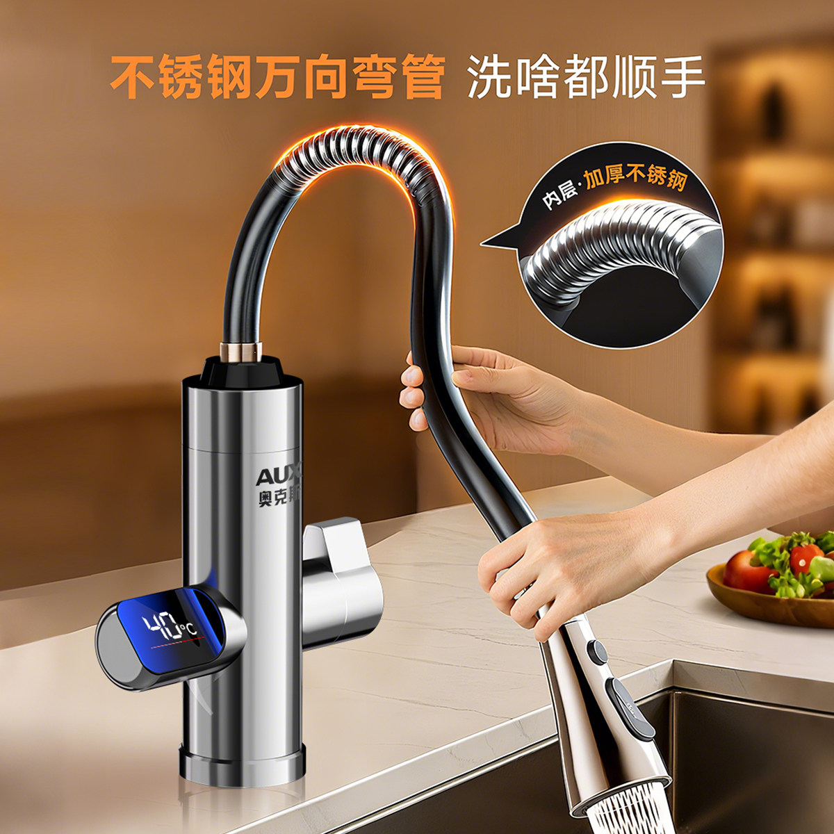 奥克斯电热水龙头变频加热器即热式速热厨房快速过水热热水器家用
