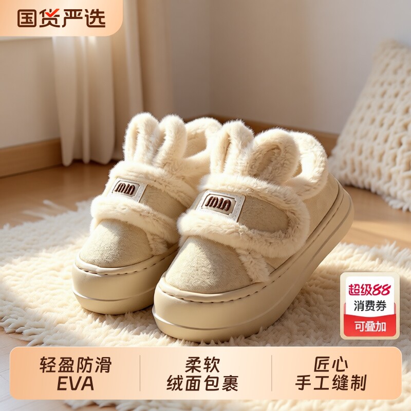 棉拖鞋棉鞋2025冬季新款毛绒兔子魔术贴女鞋外穿居家休闲全包防滑