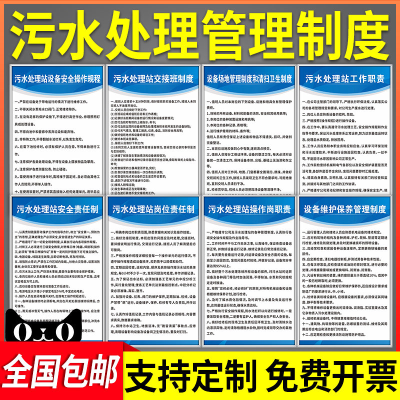 污水处理厂站管理规章制度工作职责交接班规定设备安全操作规程维护保养标识牌宣传挂图展板上墙岗位职责定制