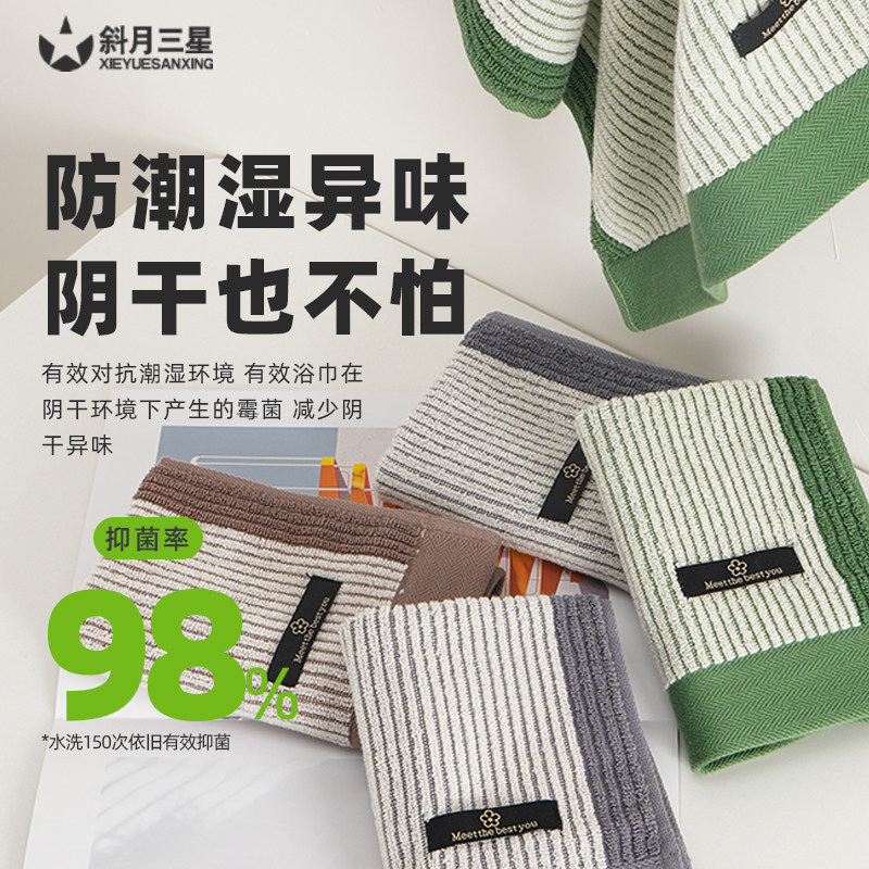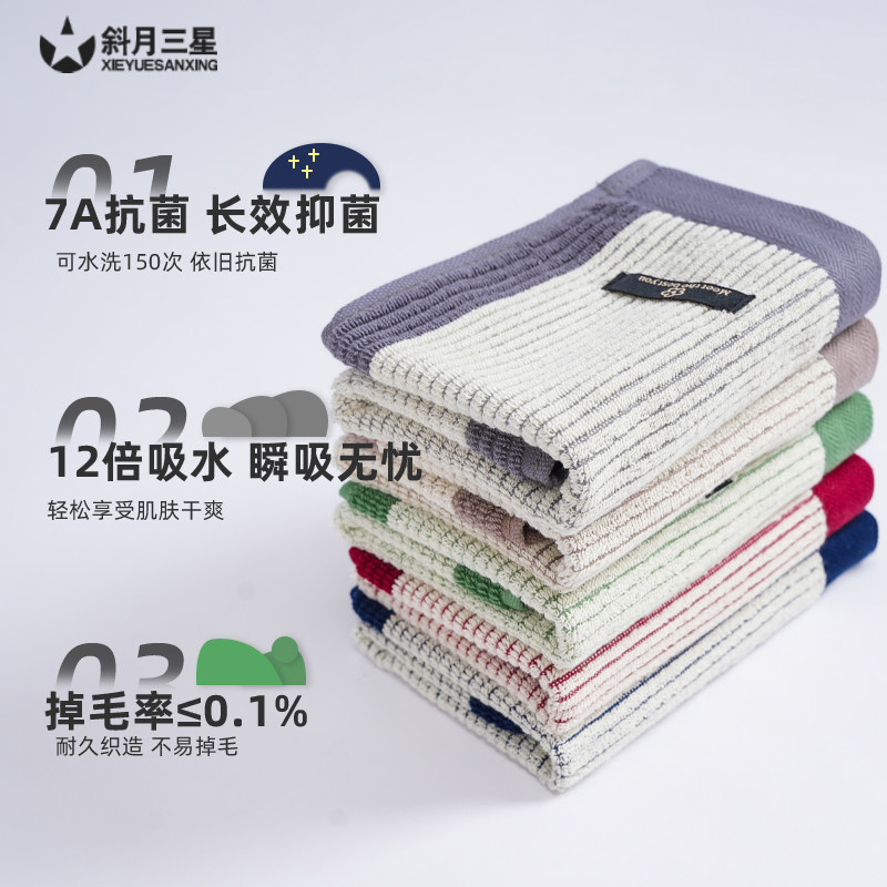 斜月三星纯棉毛巾a类精梳棉抗菌毛巾精梳棉吸水柔软成人洗脸家用