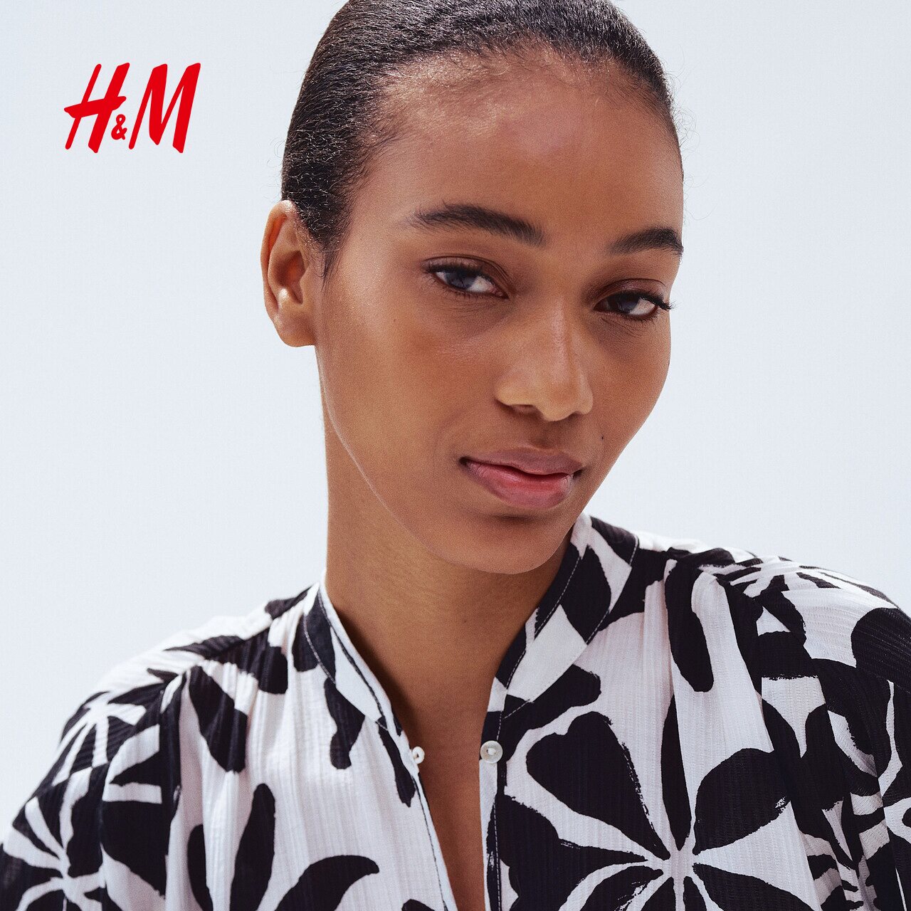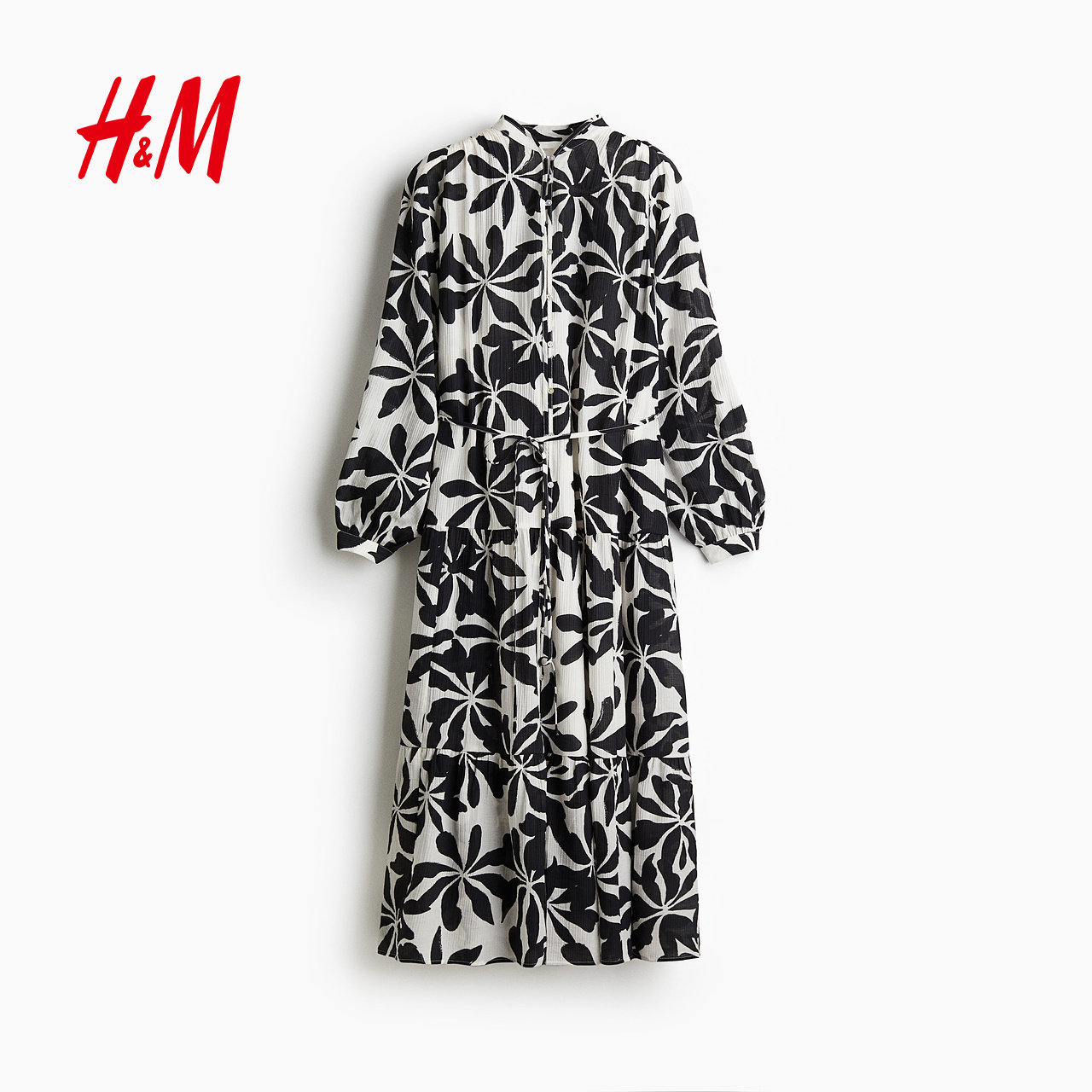 HM女装连衣裙夏季原野浪漫风圆领灯笼袖皱感植物印花长裙1219083