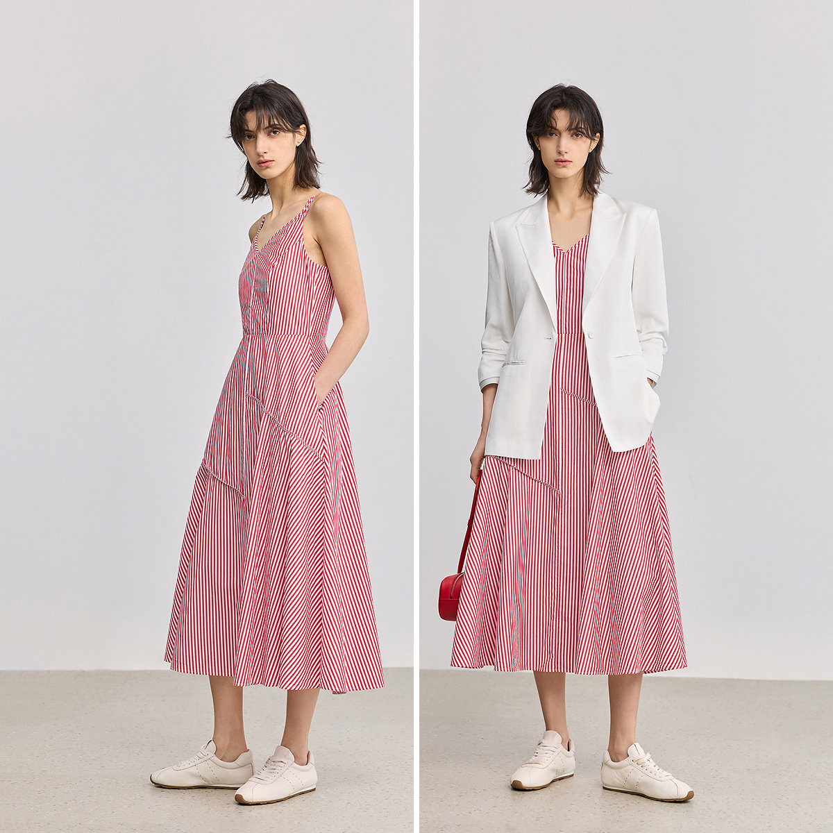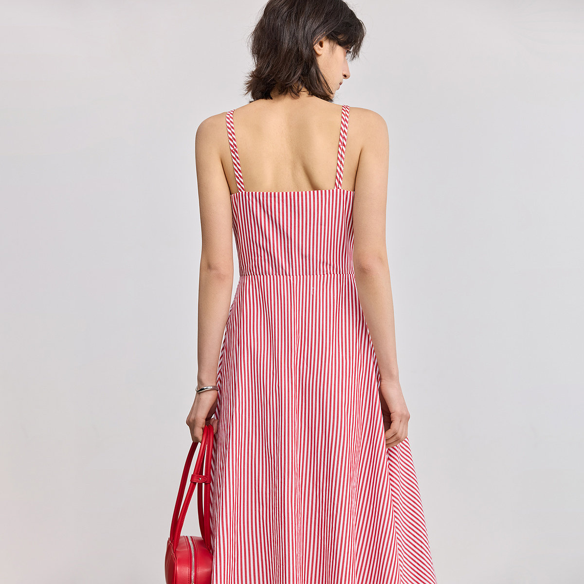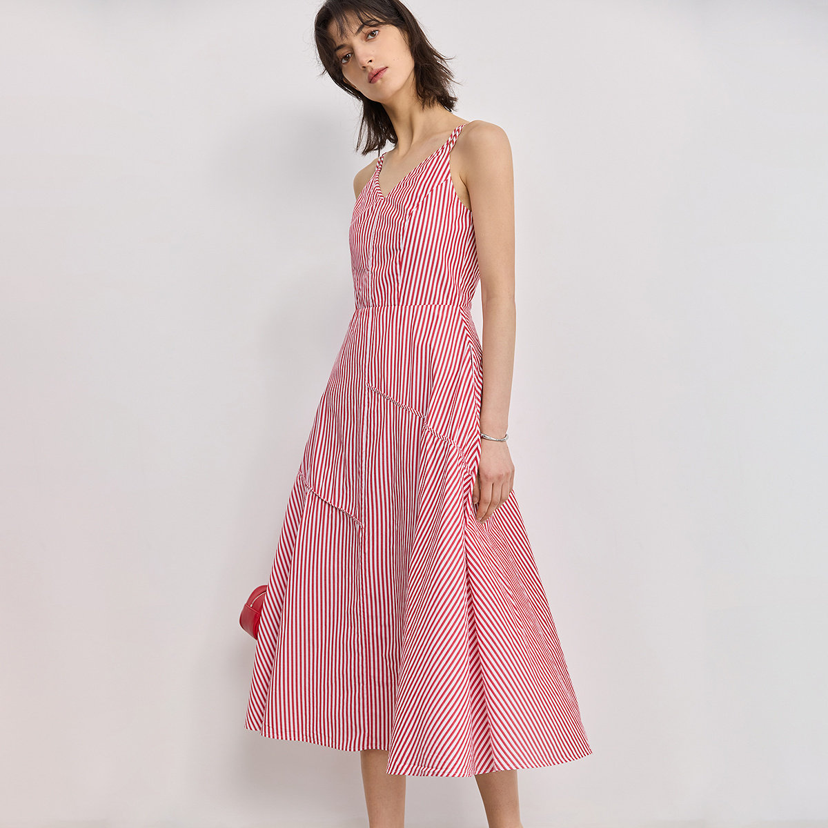 【商场同款】LILY2025夏新款全棉收腰V领百搭红色吊带裙连衣裙女