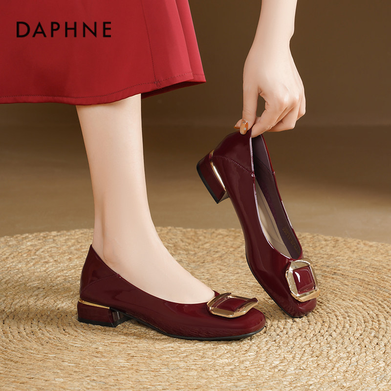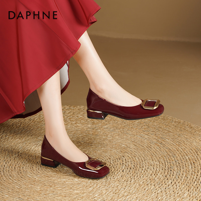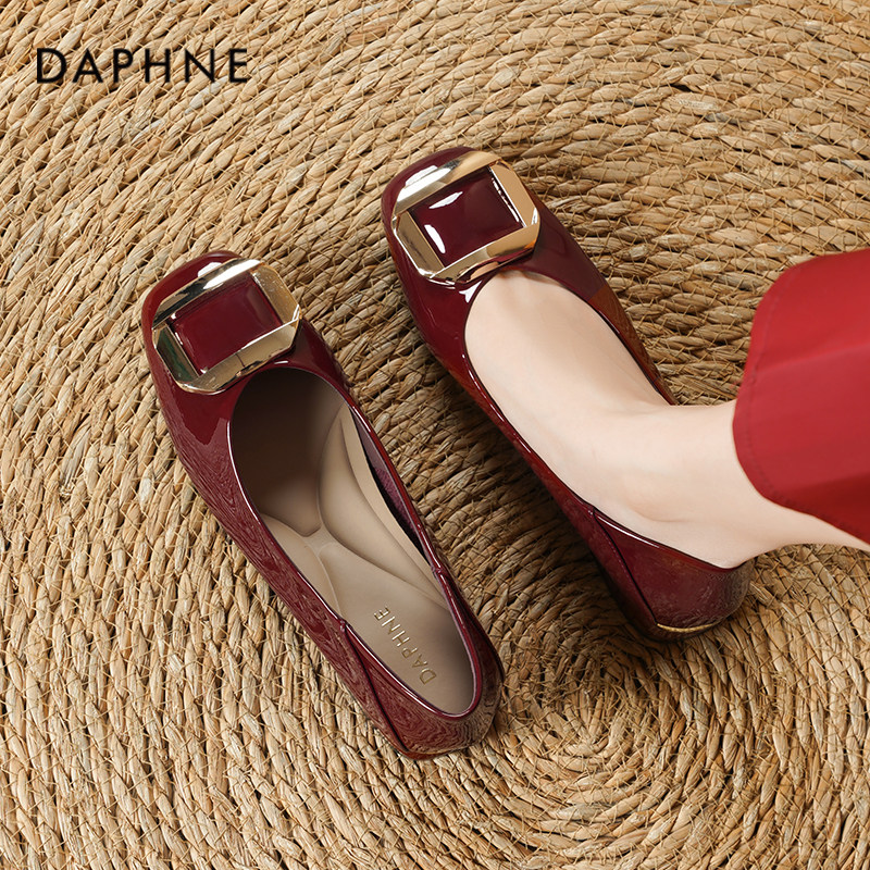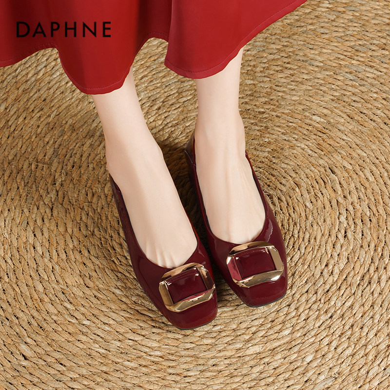 达芙妮红色单鞋女2026新款春季平底通勤女鞋法式绝美婚鞋百搭鞋子