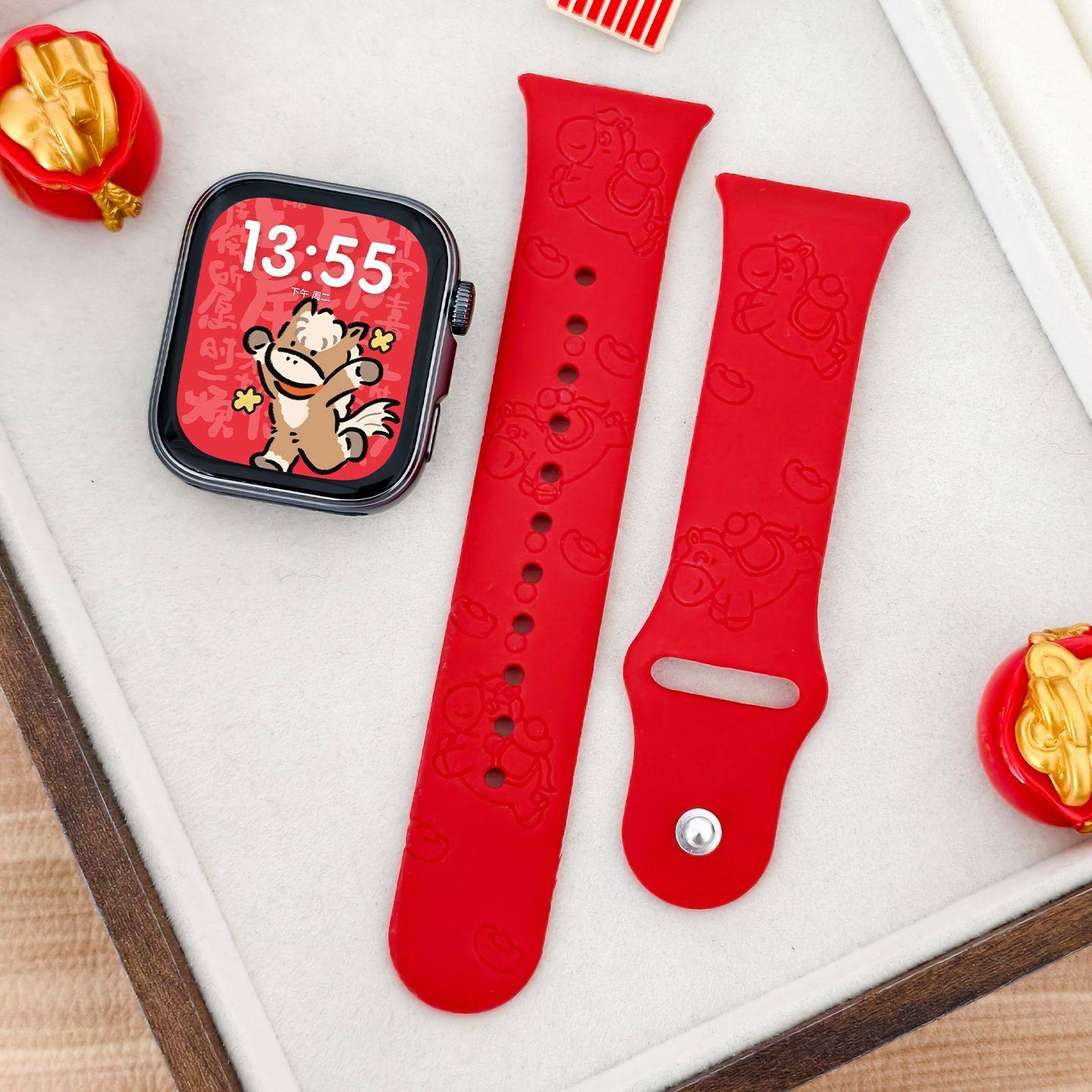 【马上有钱】适用于小米手环9pro手表带硅胶镭雕红米watch6/5/4新年红色反扣创意8pro高级智能运动配件xiaomi