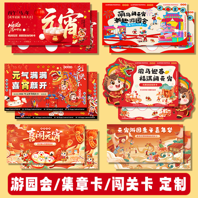 新年闯关卡定制幼儿园元宵亲子活动入场券马年庙会游园会盖章打卡集章卡设计2026年儿童游戏任务通关卡片定做