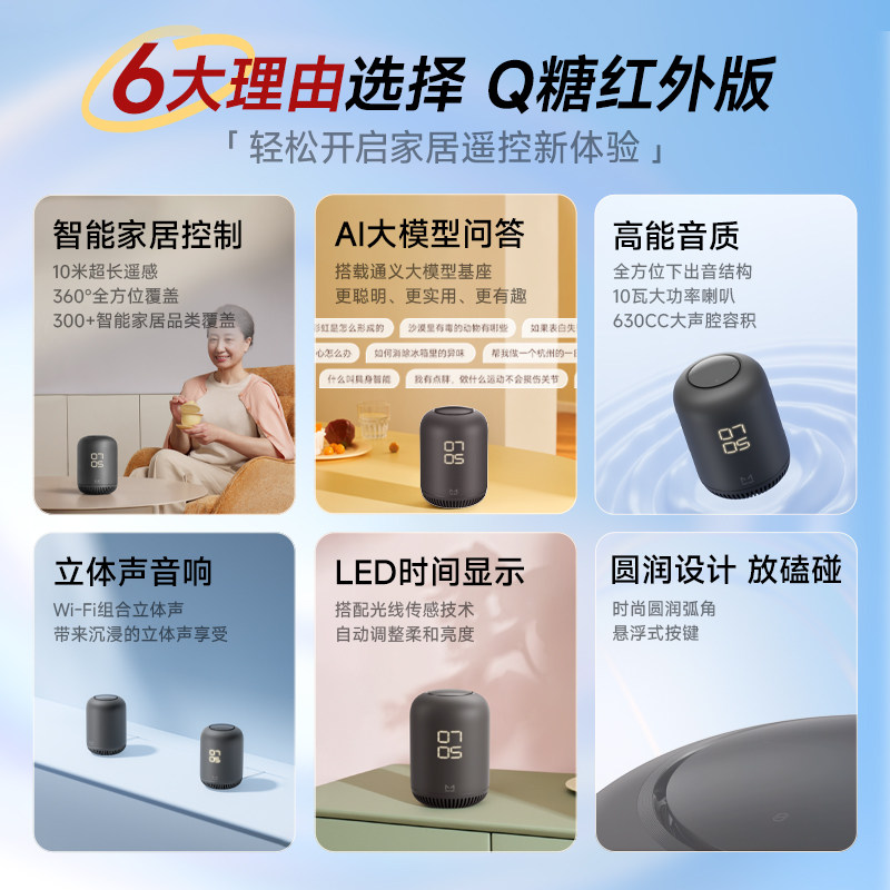 天猫精灵新品Q糖智能音箱红外蓝牙音响声控助眠AI大模型问答达播