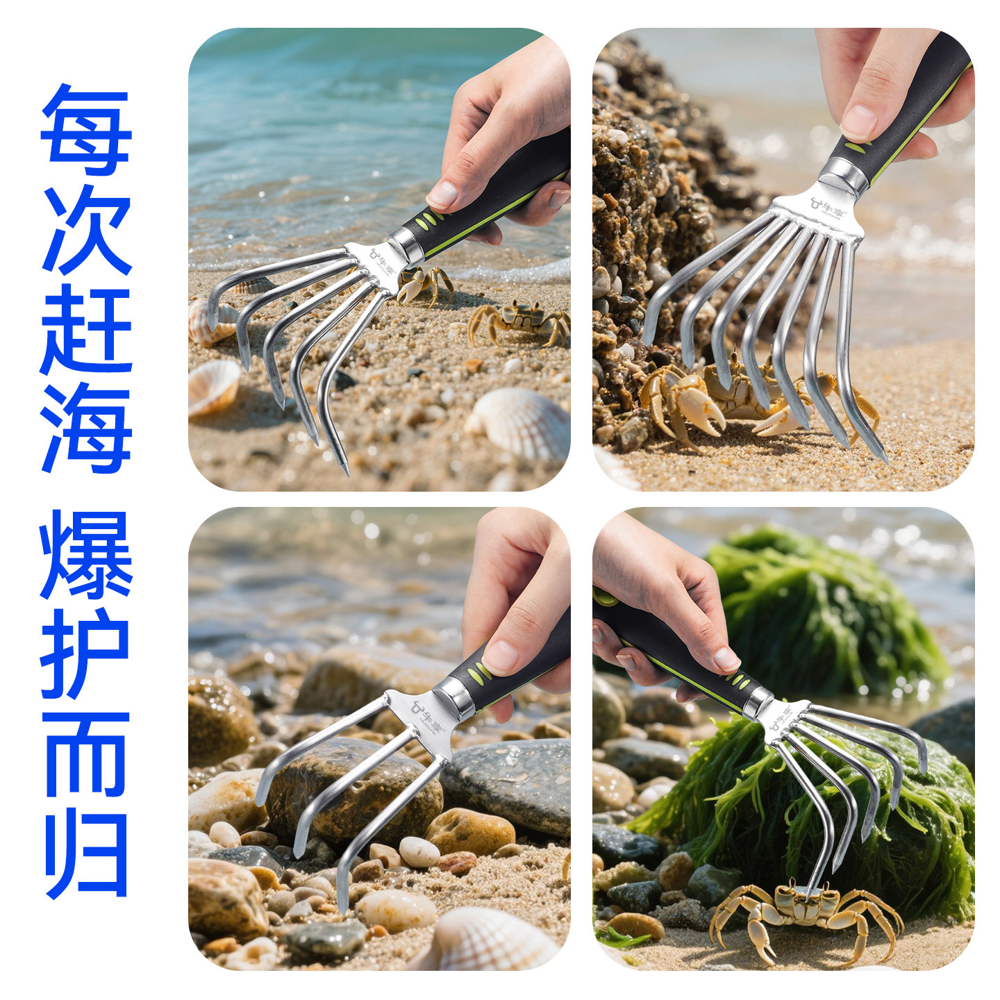 加厚轻便型园艺耙子种植松土翻土豆赶海挖贝壳家用沙滩不锈钢耙子