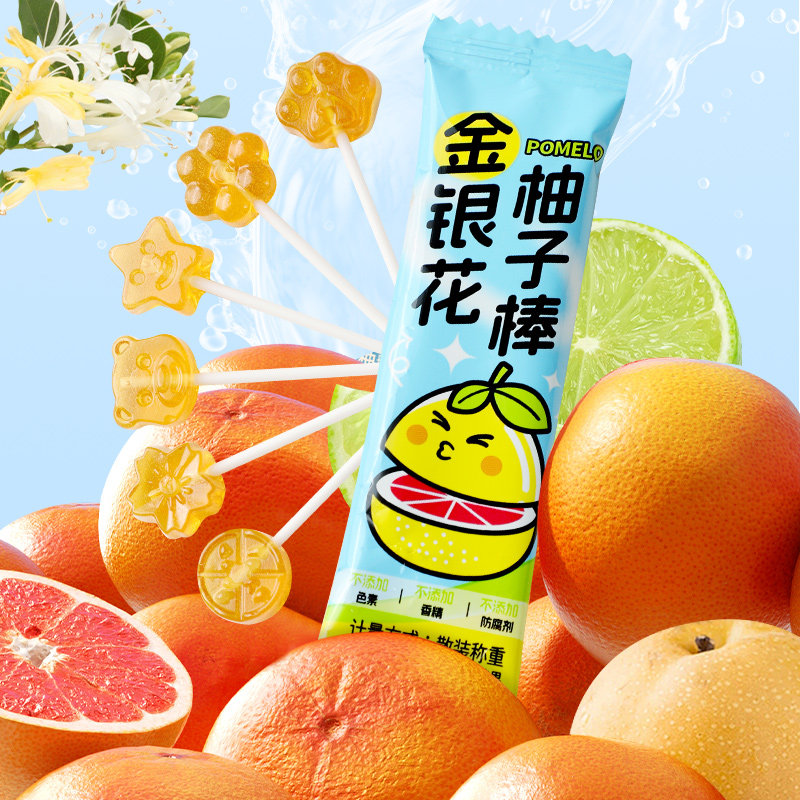 网红金银花柚子棒棒糖奖励学生水果儿童糖果硬糖零食解馋小包装