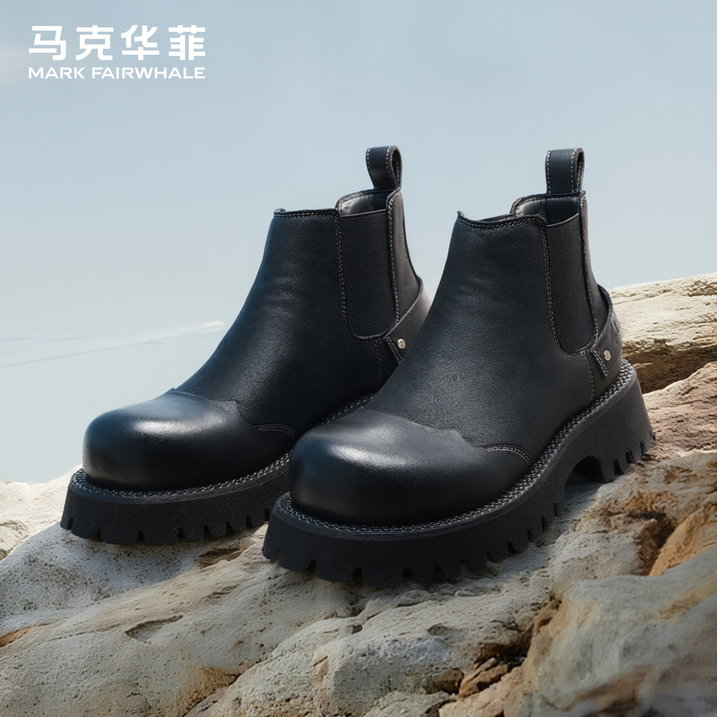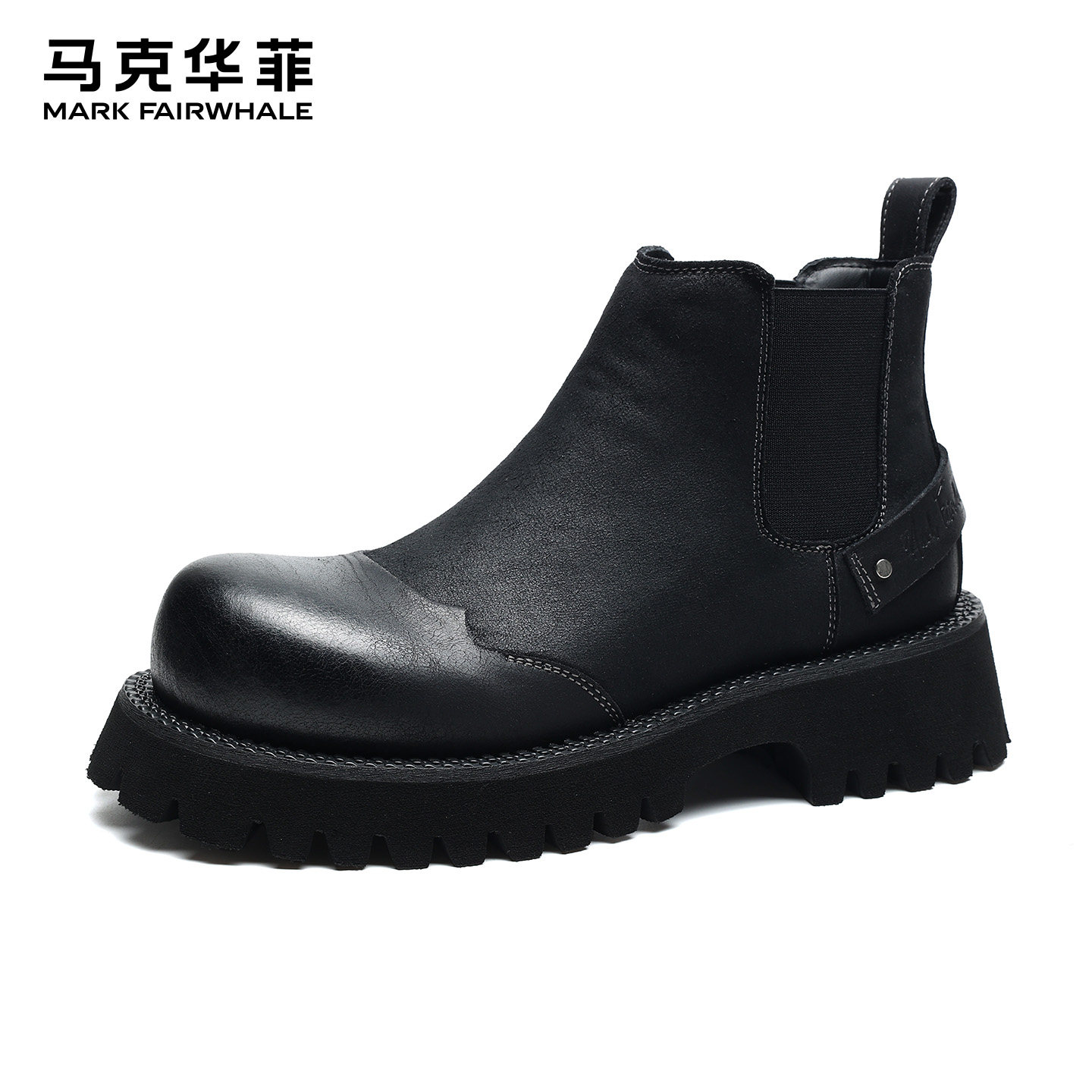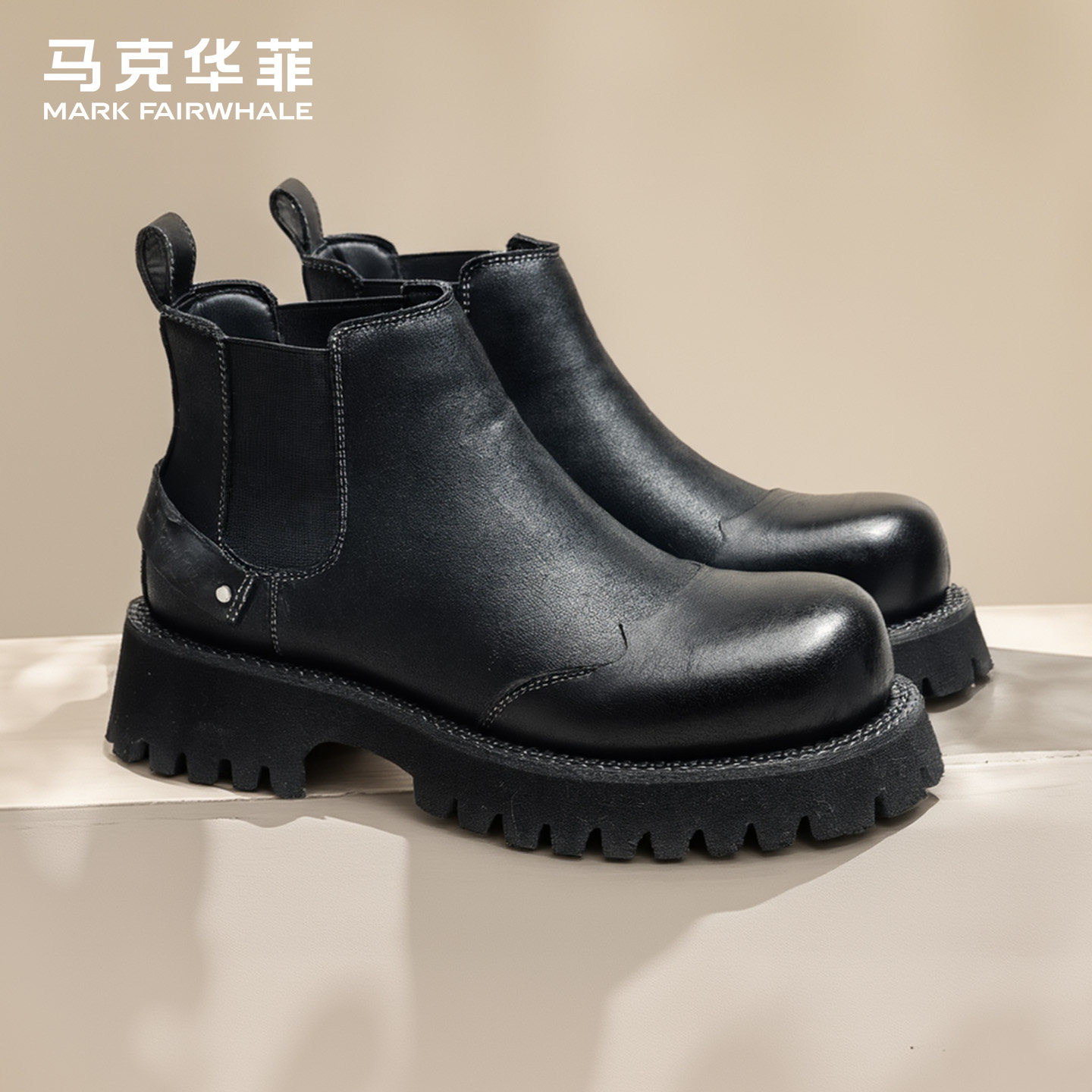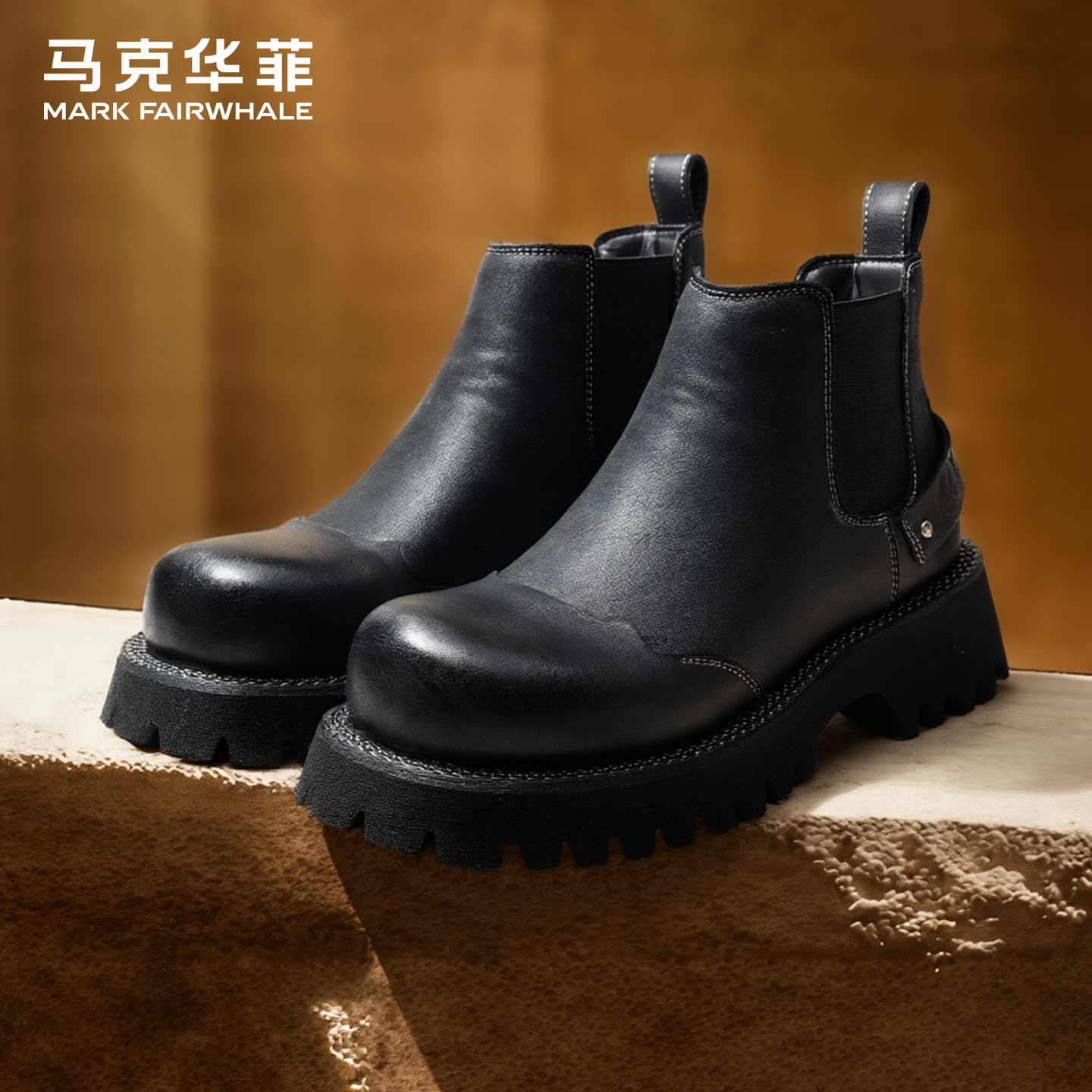 马克华菲厚底切尔西靴男2025秋冬新款机车靴一脚蹬马丁靴男款皮靴