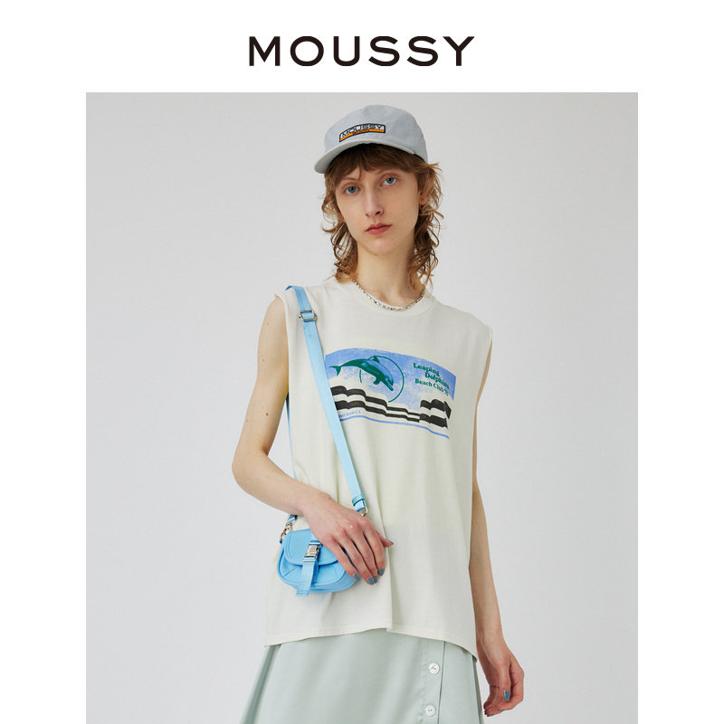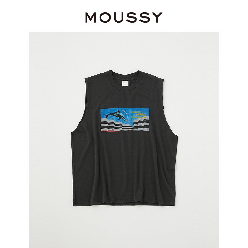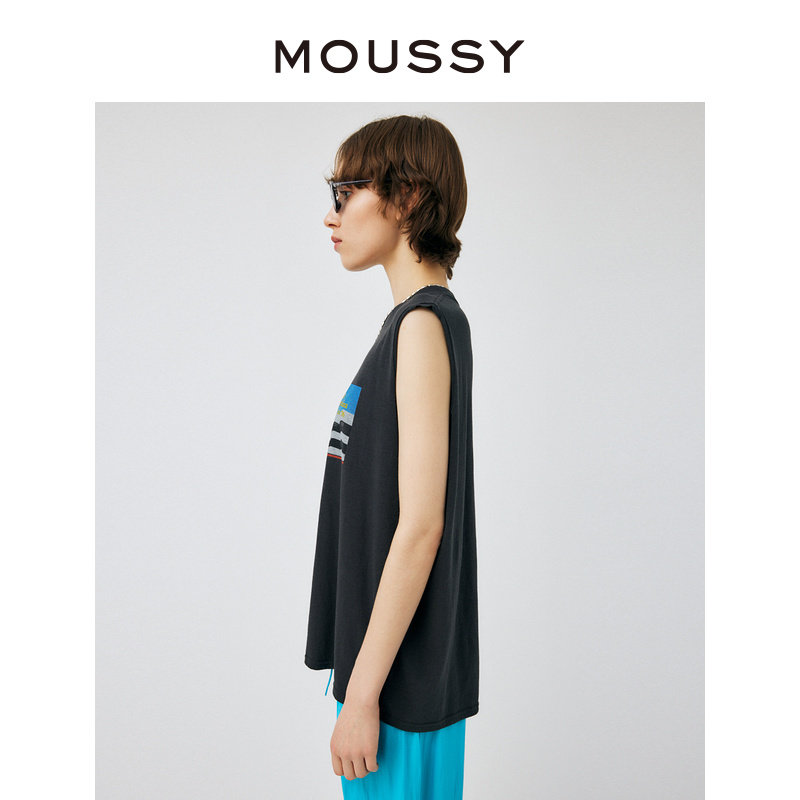 MOUSSY 冬季新品街头机车图案印花无袖T恤上衣010GSQ90-0420