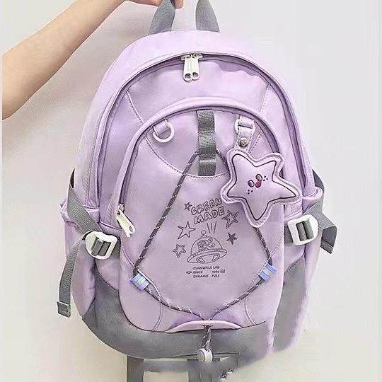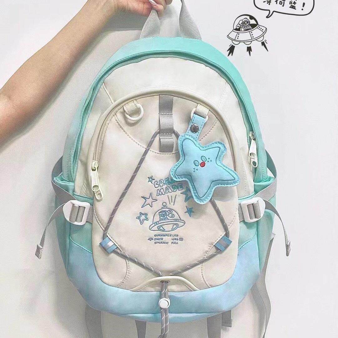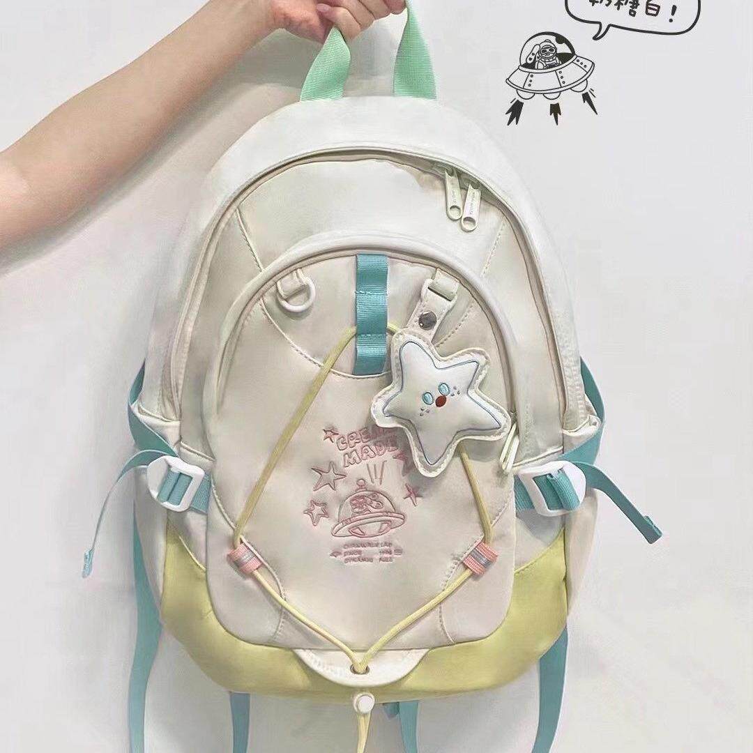自制原创星球兔可爱奶糖兔学生女双肩包搭星星挂件轻便书包甜美式
