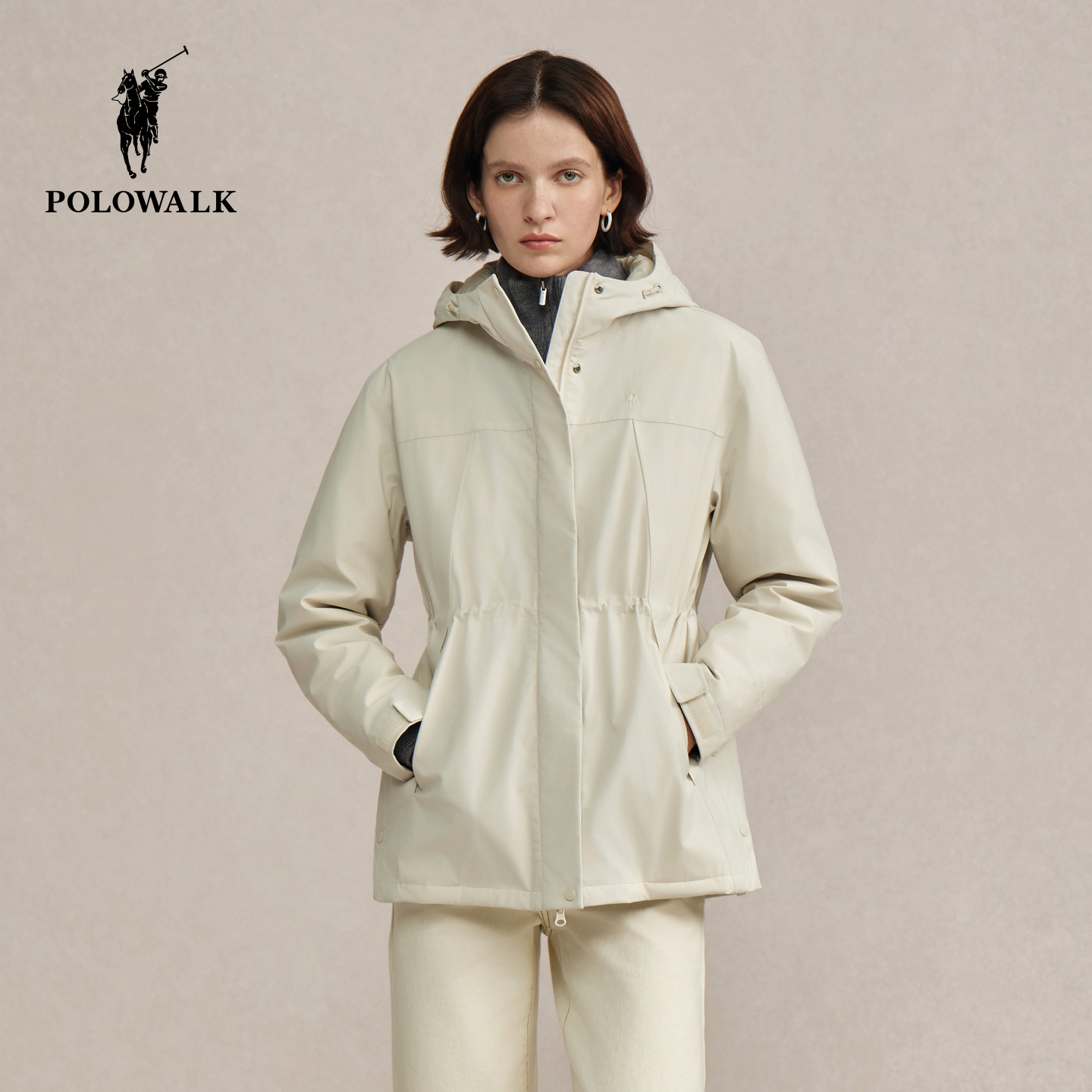 POLOWALK女式羽绒服2025冬季新品简约百搭收腰90鸭绒连帽羽绒服女