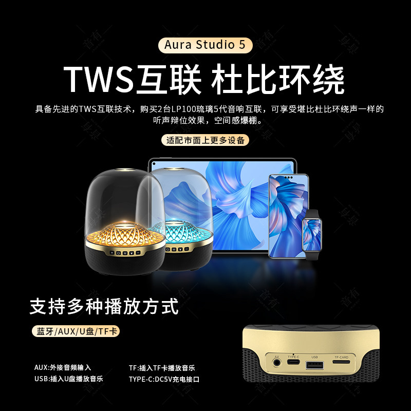 曼哈顿无线蓝牙音箱琉璃5代顶配版重低音炮炫彩灯华强北音响插卡4