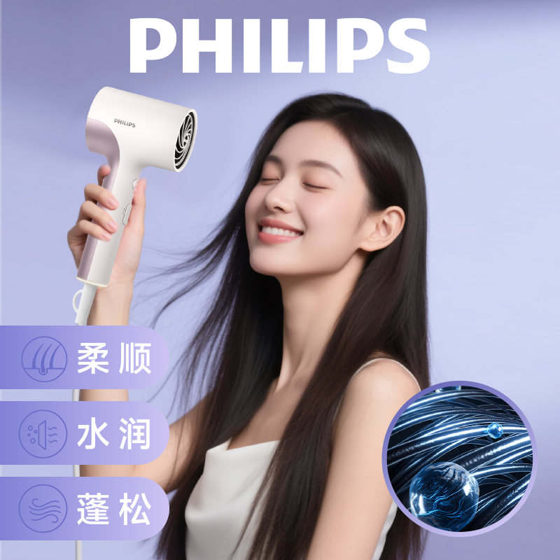 飞利浦电吹风机负离子护发速干家用学生速干吹风筒大功率BHD393