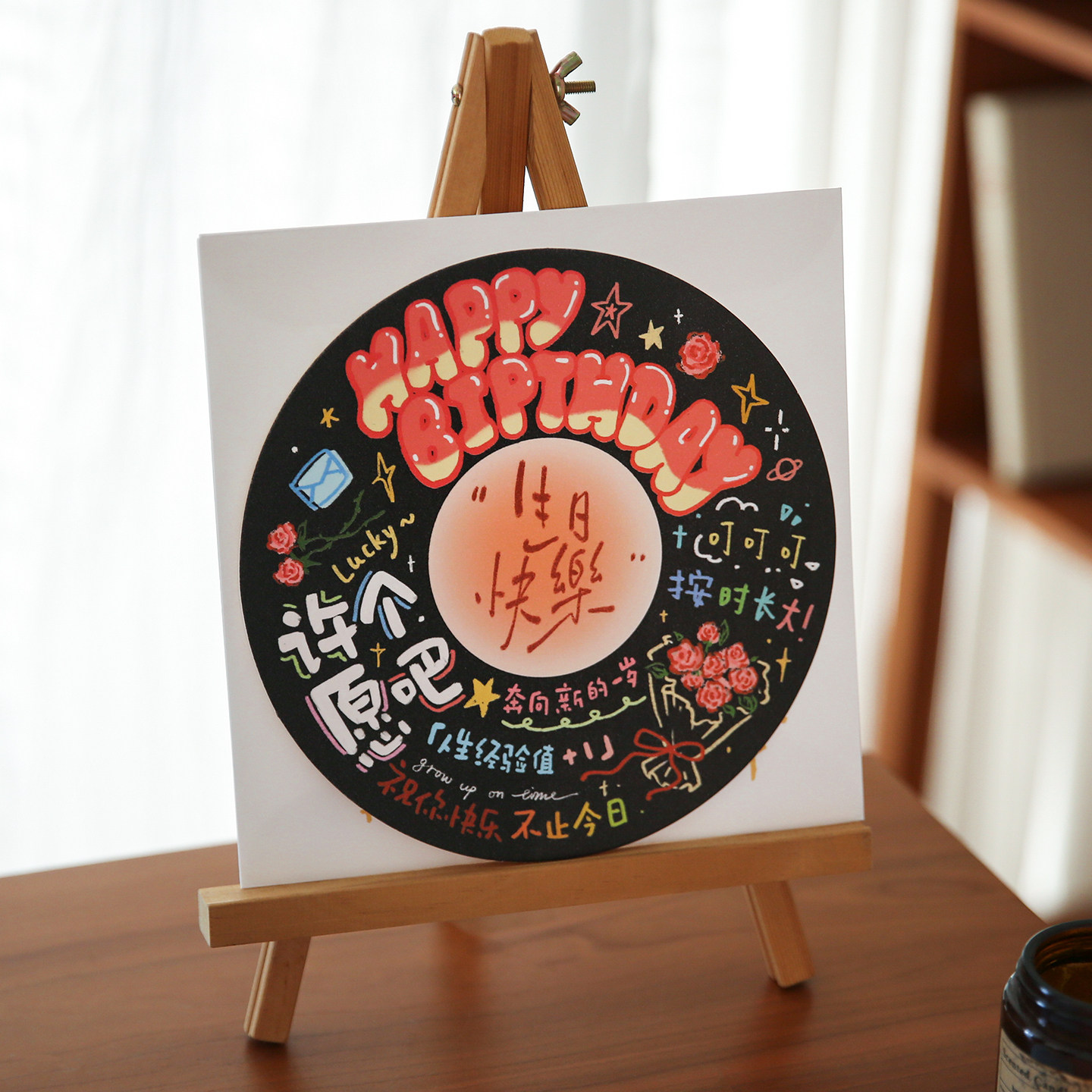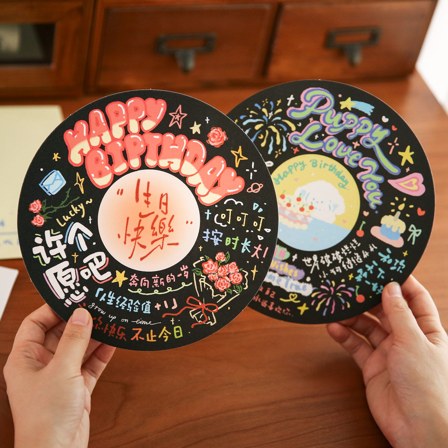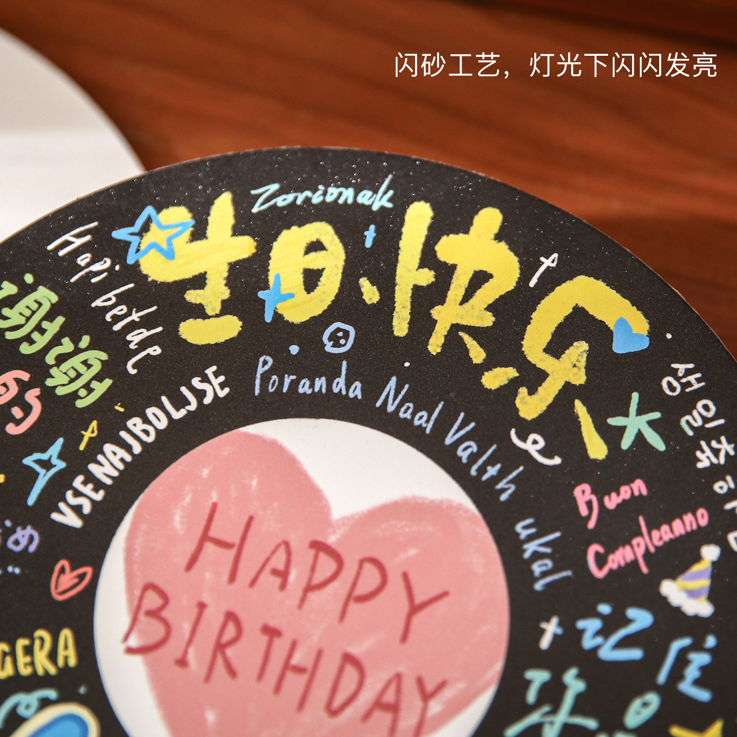 小日子不翻篇 闪砂手绘生日圆形贺卡信封ins文艺小众生日卡片礼物