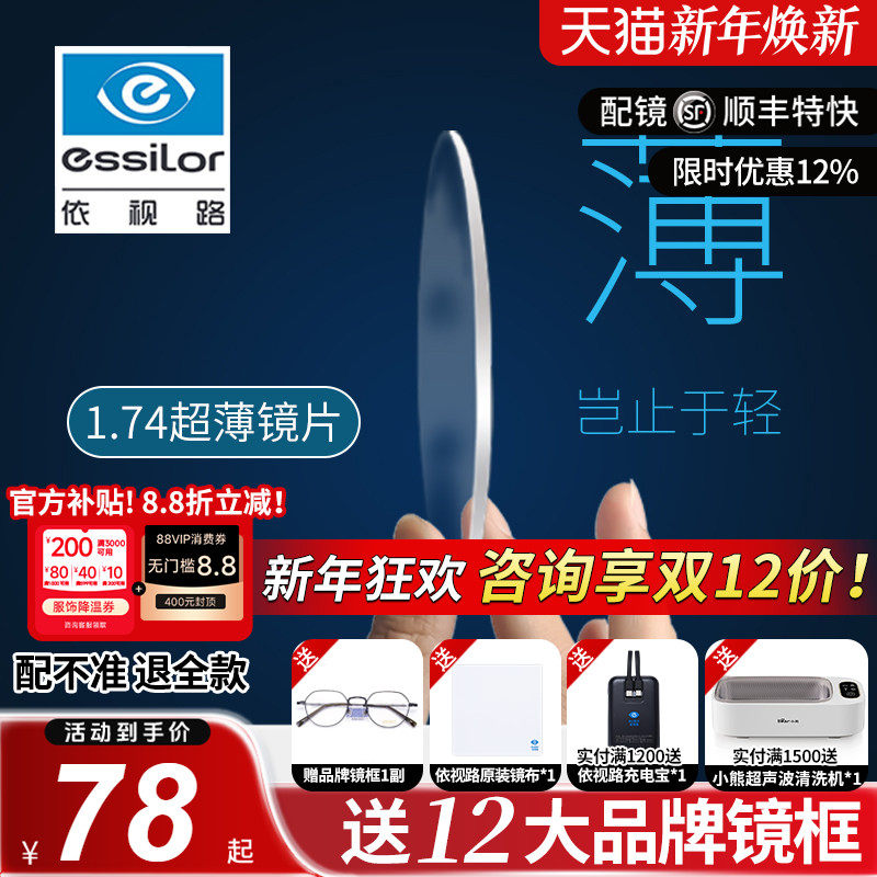 依视路镜片膜岩膜致近视眼镜超薄爱赞钻晶a4防蓝光变色官方旗舰店