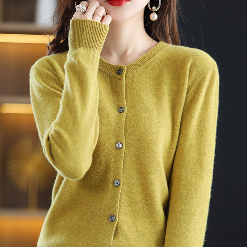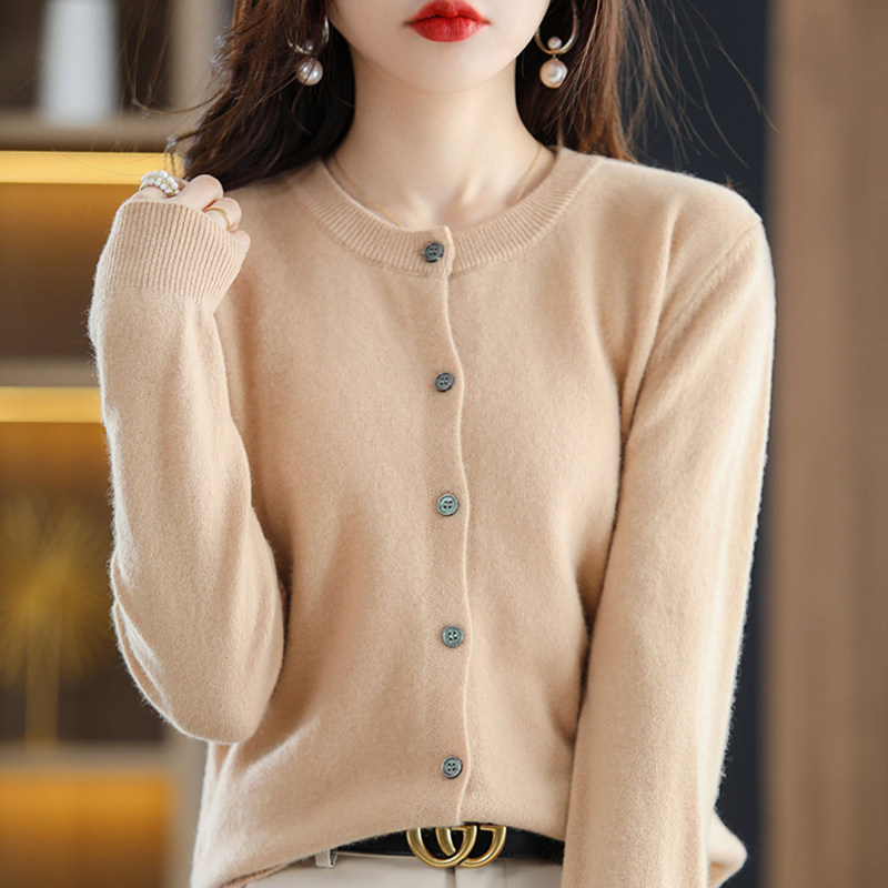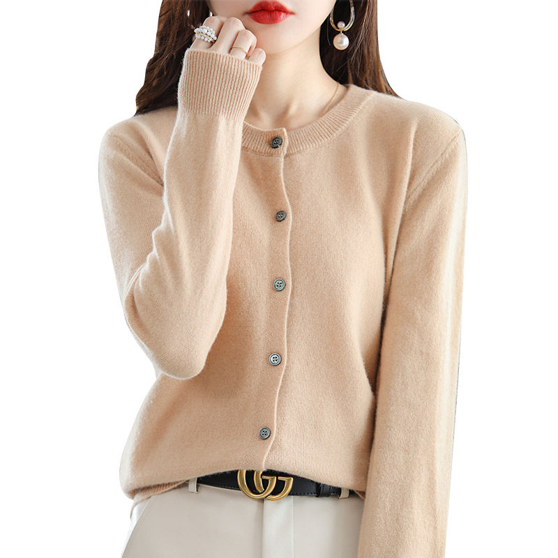 鄂尔多斯市断码羊绒开衫女春秋新款宽松毛衣外套翻领针织羊毛衫