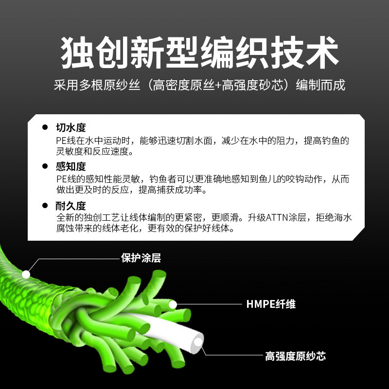 进口原丝X24pe线路亚打黑海钓顺滑耐磨强拉力大力马远投主线鱼线