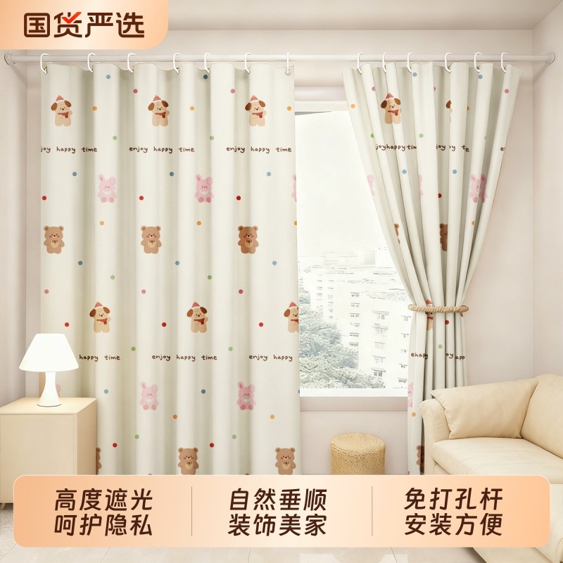 新款窗帘免打孔安装全遮光2025落地帘子卧室遮挡帘客厅儿童房隔热