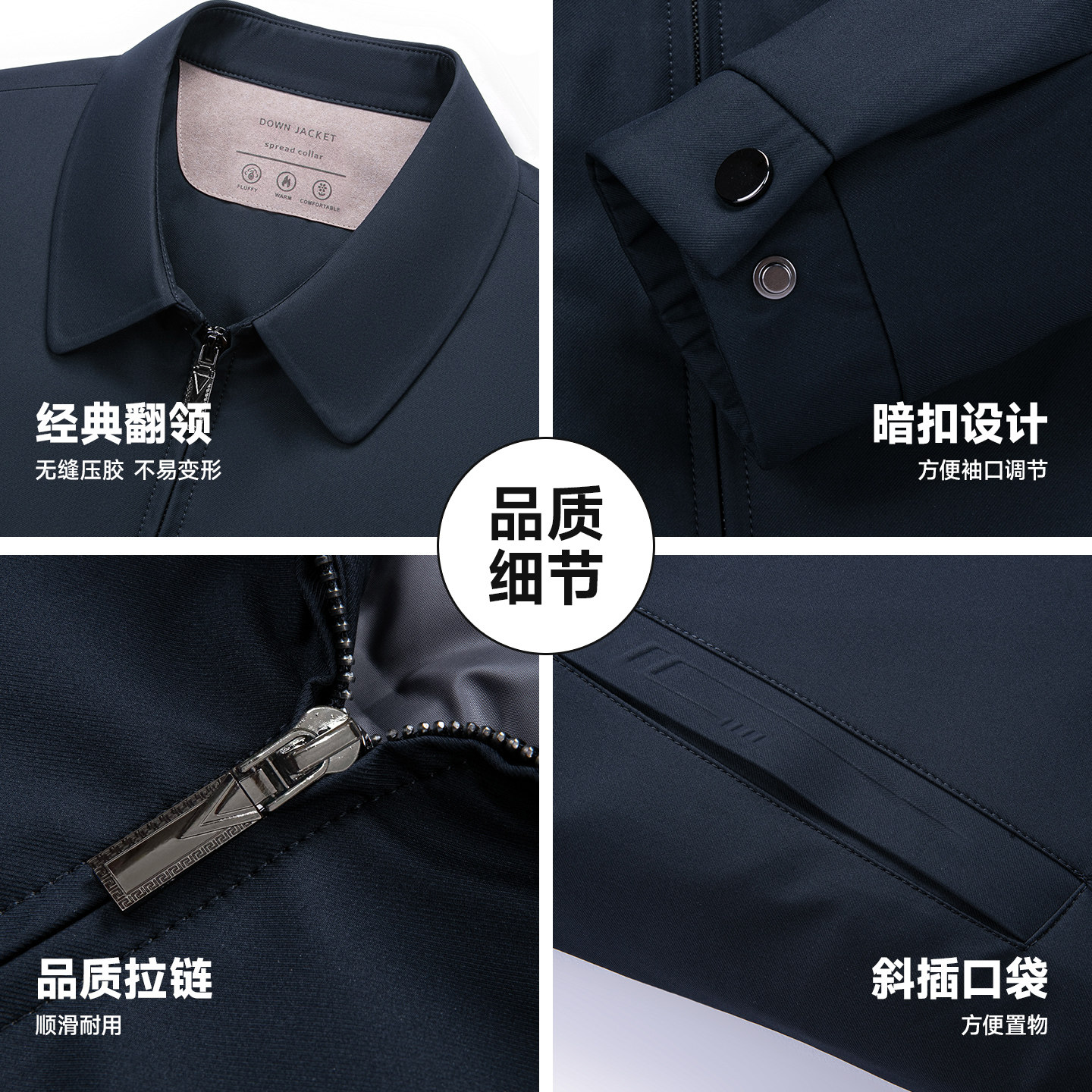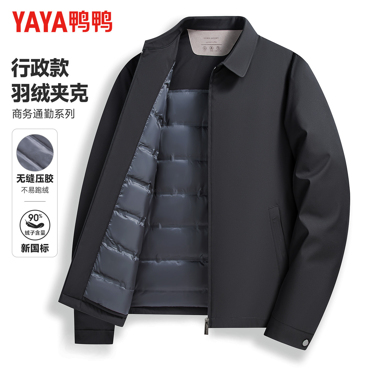 鸭鸭羽绒服男款冬季商务休闲干部装短款翻领中老年爸爸装保暖外套