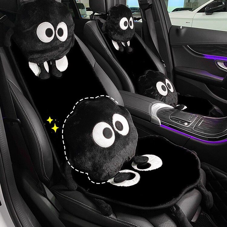 汽车坐垫冬季毛绒小煤球卡通可爱女座垫防滑透气车载座垫车用坐垫