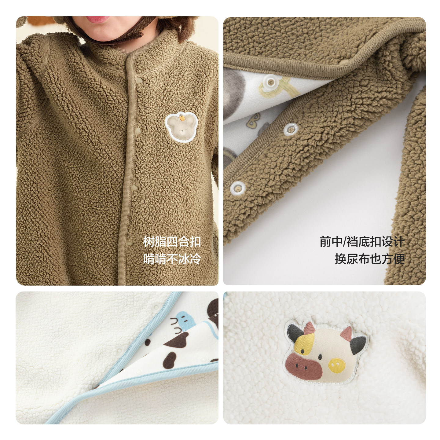 巴拉巴拉balaOne婴儿连体衣2025新款秋冬宝宝包屁衣爬服两面穿萌