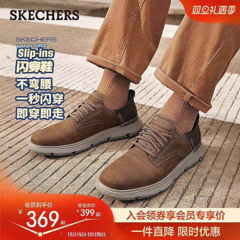 斯凯奇秋冬新款男子舒适休闲皮鞋商务鞋通勤鞋德比鞋软底上班板鞋